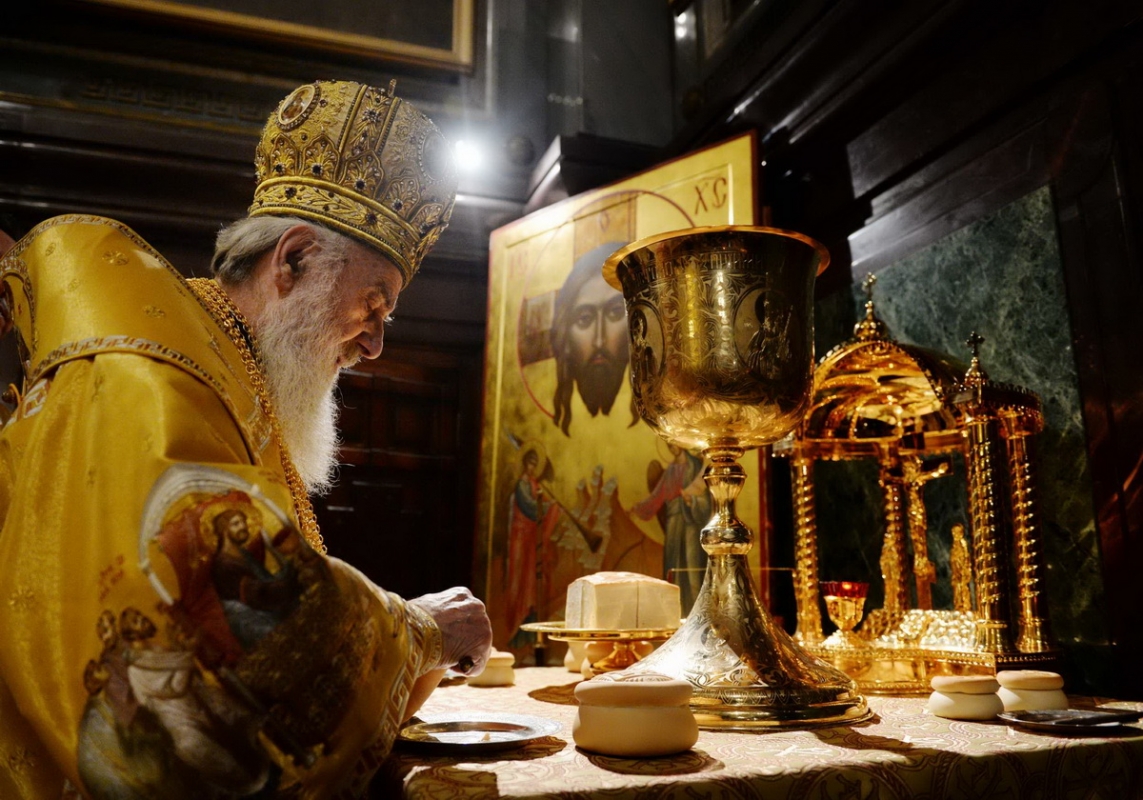 После сугубой ектении митрополит Крутицкий и Коломенский Ювеналий прочитал молитву о Предстоятеле Русской Церкви.