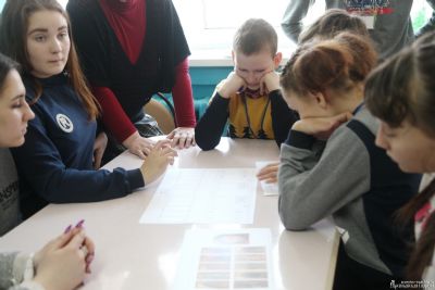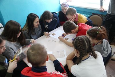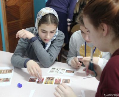 После лекции для усвоения пройденного материала участники разбились на команды, и каждая команда получила макет иконостаса и иконы, которые нужно было вырезать и приклеить в нужное место. Лучше всего с заданием справилась команда №2.