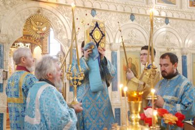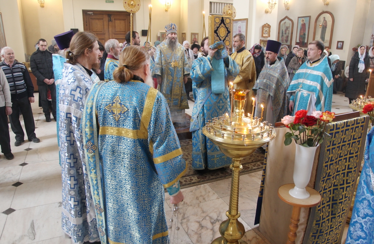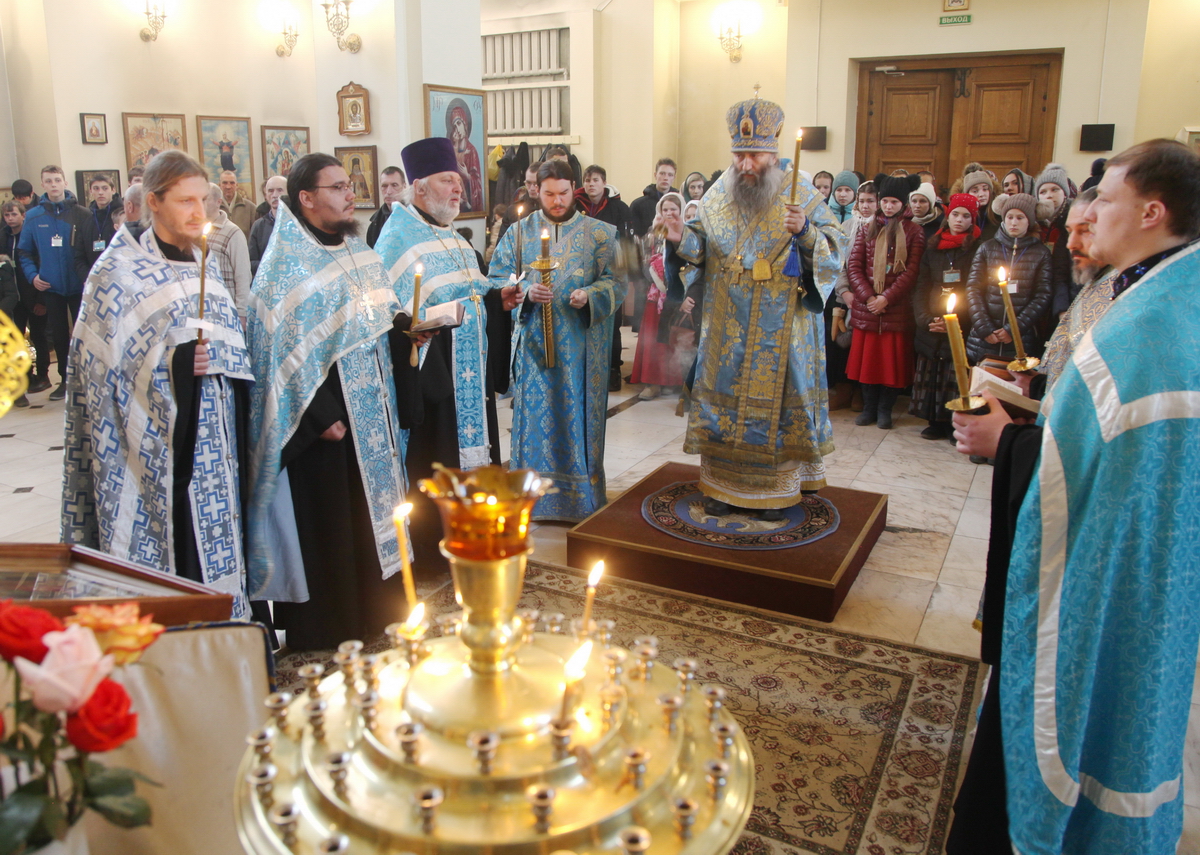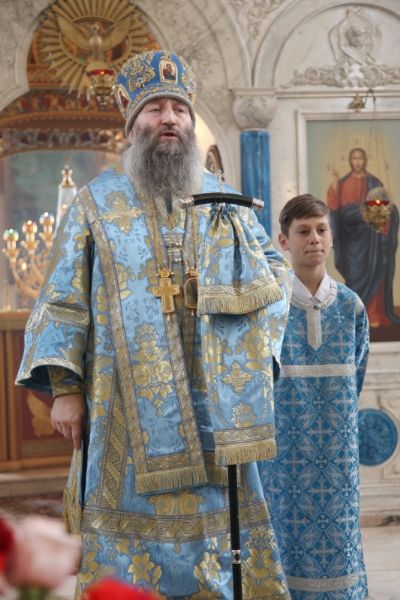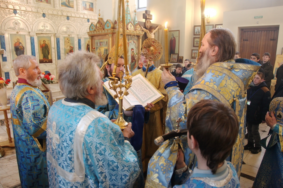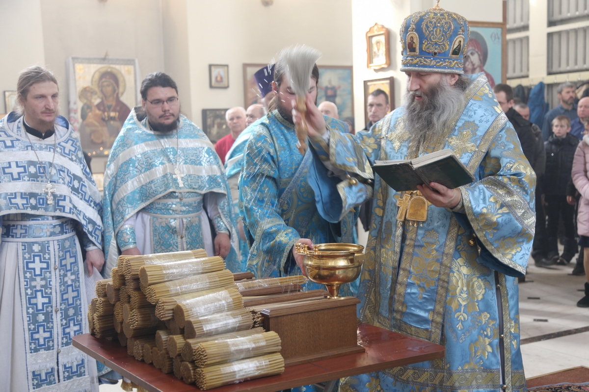 По окончании службы правящий архиерей обратился со словом к прихожанам храма: «С праздником дорогие отцы, братья и сестры! С праздником Сретения Господня. Сегодня мы вспоминаем евангельское событие – встречу праведного Симеона с Господом, нашим Спасителем мира. По преданию, Симеон был одним из семидесяти переводчиков Пятикнижия с еврейского на греческий язык. Когда праведный Симеон переводил книгу пророка Исаии, он дошел до слов: «Се Дева во чреве приимет и родит Сына» и усомнился в данных словах. И он захотел вставить вместо слова «дева» слово «жена», как вдруг ему явился ангел и сказал, что Симеон не умрет, пока не увидит Спасителя мира. Он прожил 300 лет до встречи с Богомладенцем.