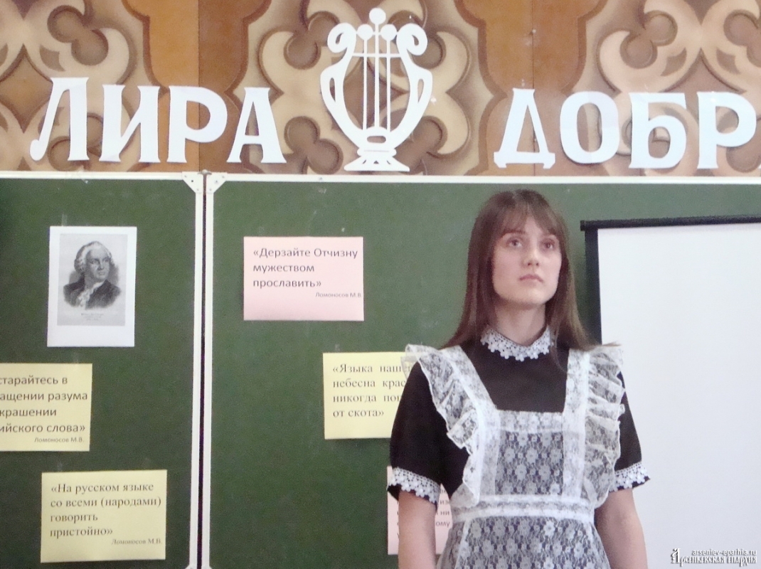 Конкурсную программу открыла Кармадонова Полина, ученица школы №17 «Родник», читая перевод Михаила Ломоносова «Преложение Псалома 1»: