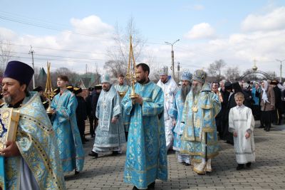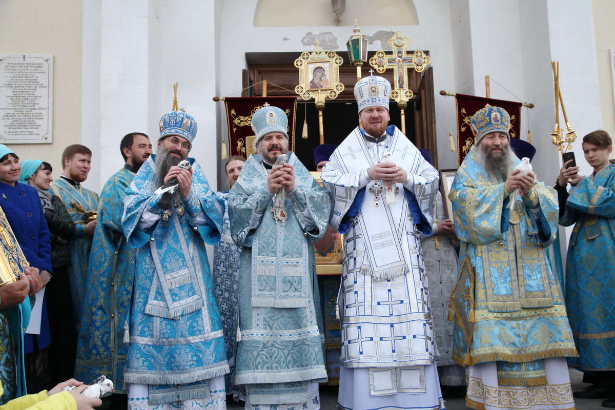 По окончании богослужения был совершен крестный ход вокруг Благовещенского кафедрального собора.