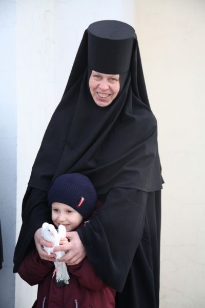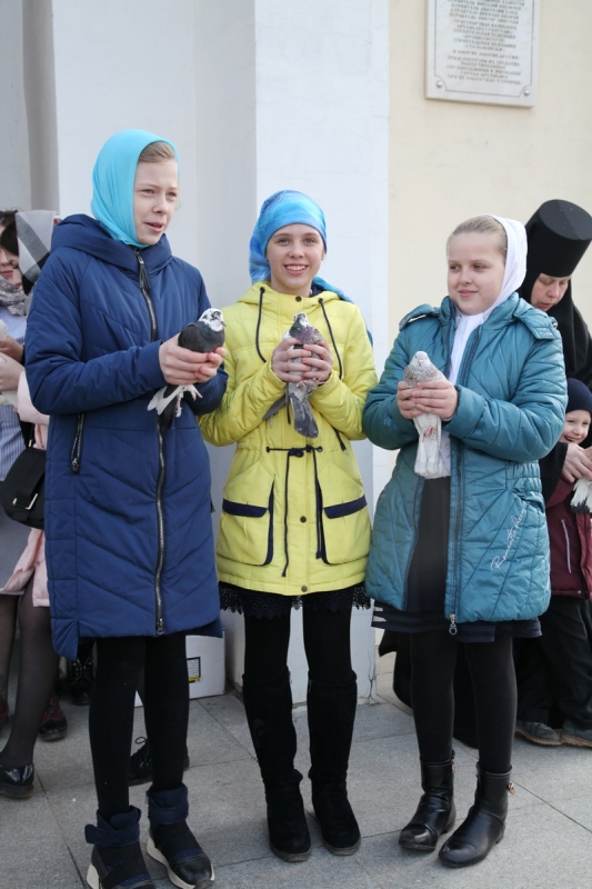 В соответствии с традицией праздника Благовещения архиереи митрополии выпустили в небо голубей с крыльца Благовещенского кафедрального собора. Голубь ― символ чистоты и миролюбия, с которым Пречистая Дева приняла Благую весть.