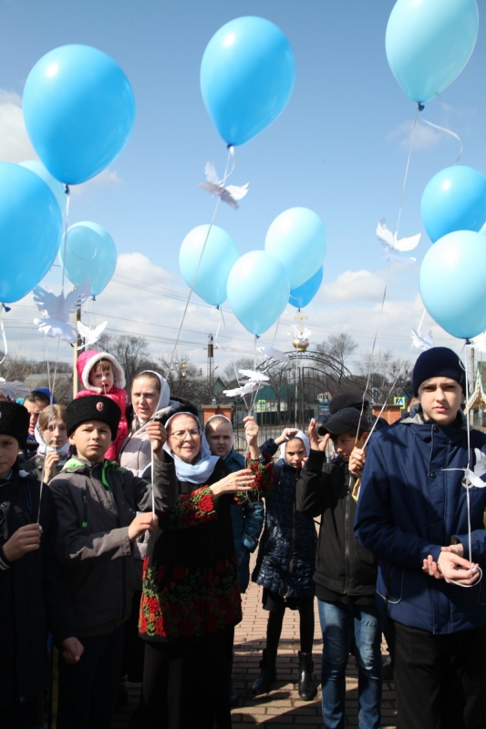 Праздничную традицию также поддержали волонтеры «Молодой гвардии» и учащиеся воскресной школы собора: всю неделю ребята вырезали силуэты голубков, чтобы в день Благовещения привязать их к шарам и выпустить в небо.