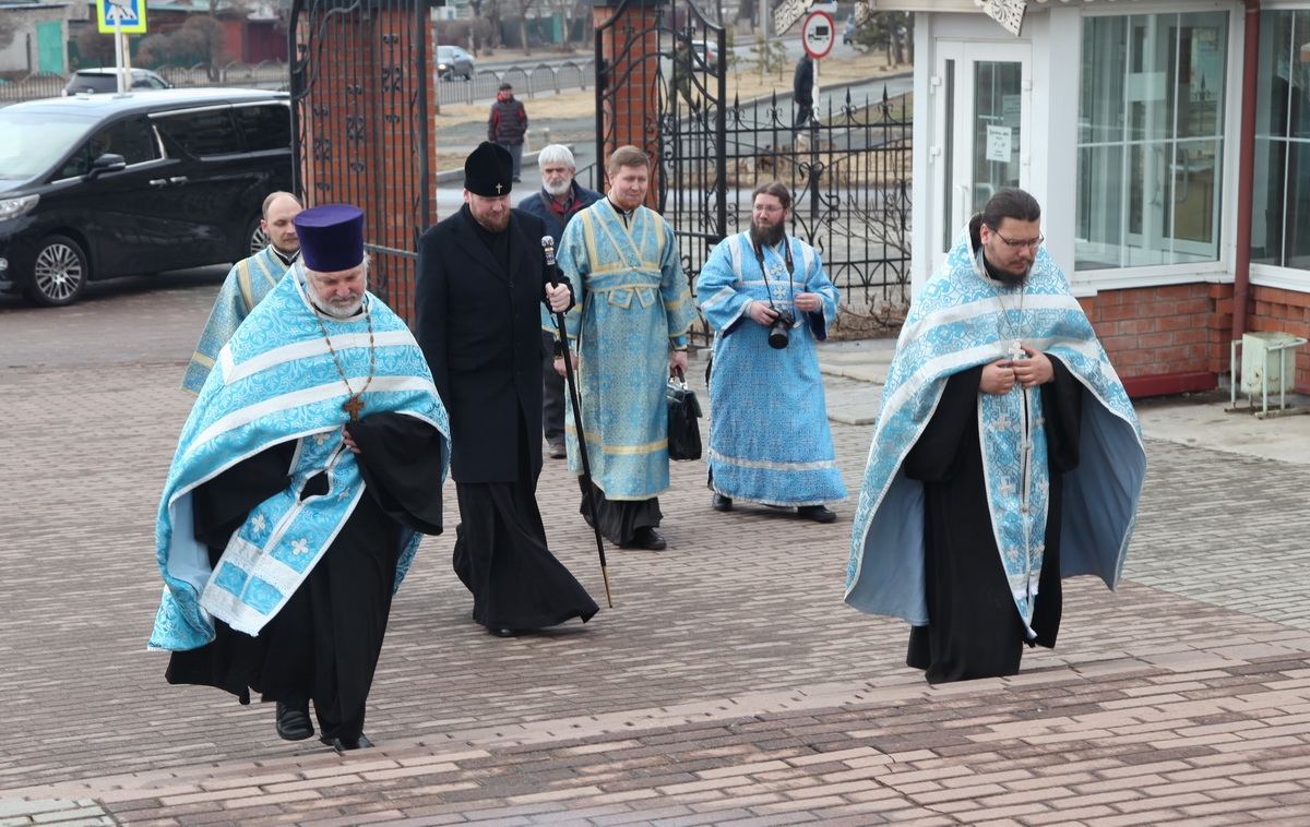 Арсеньев. 6 апреля 2019 года, в субботу 4-й седмицы, Крестопоклонной, в канун праздника Благовещения Пресвятой Богородицы, митрополит Владивостокский и Приморский Владимир, епископ Находкинский и Преображенский Николай, епископ Арсеньевский и Дальнегорский Гурий, в сослужении духовенства Приморской митрополии, совершили всенощное бдение в Благовещенском кафедральном соборе.
