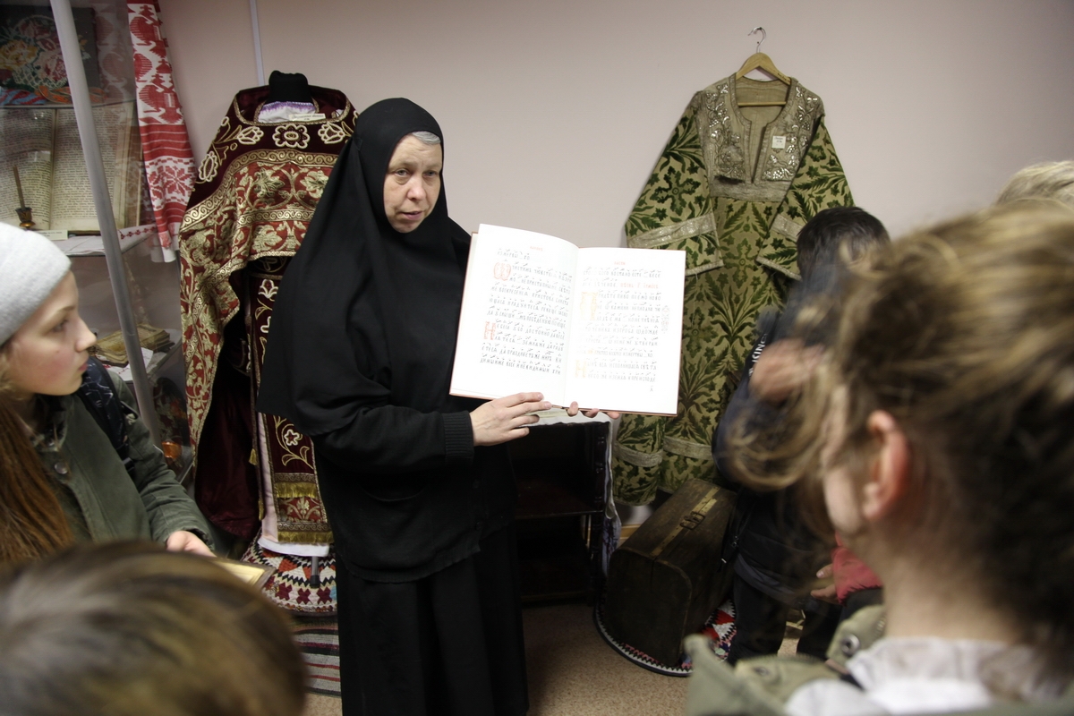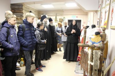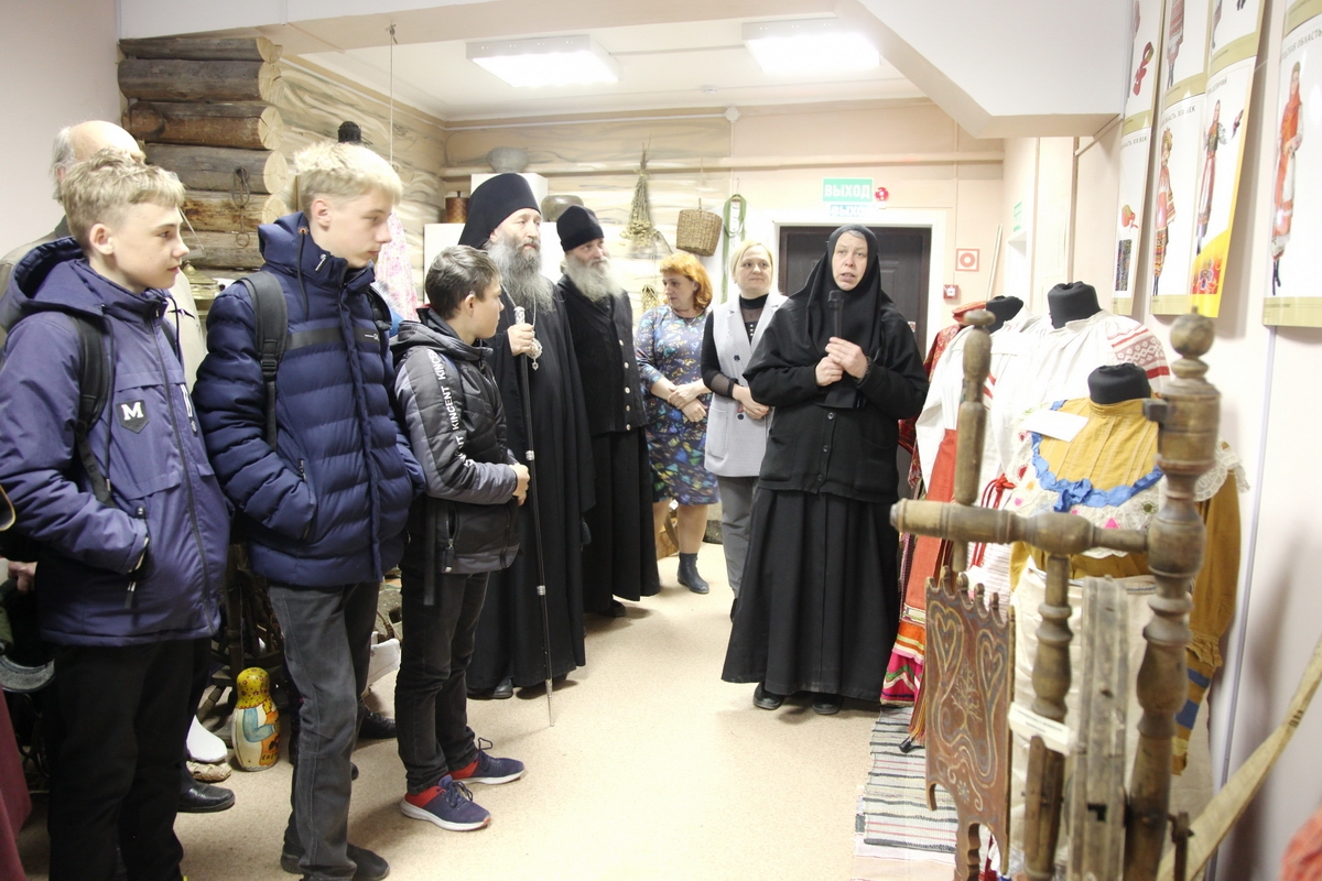 После торжественного открытия состоялась первая экскурсия по представленным на выставке экспонатам. Ее провела инокиня Мария (Воробьева), которая интересно и познавательно рассказала слушателям о нашей русской одежде и русском быте.