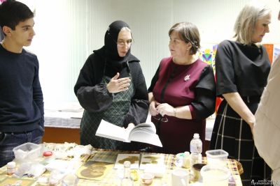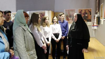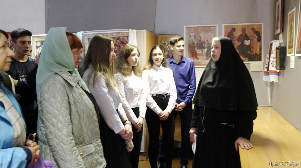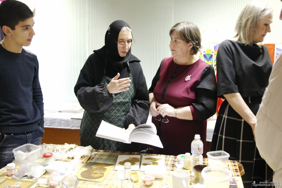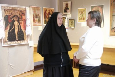 Инокиня Дария, иконописец Арсеньевской епархии, член Союза художников г. Москвы, провела для всех желающих мастер-класс по иконописи. Примечательно то, что ее работы также представлены в экспозиции.