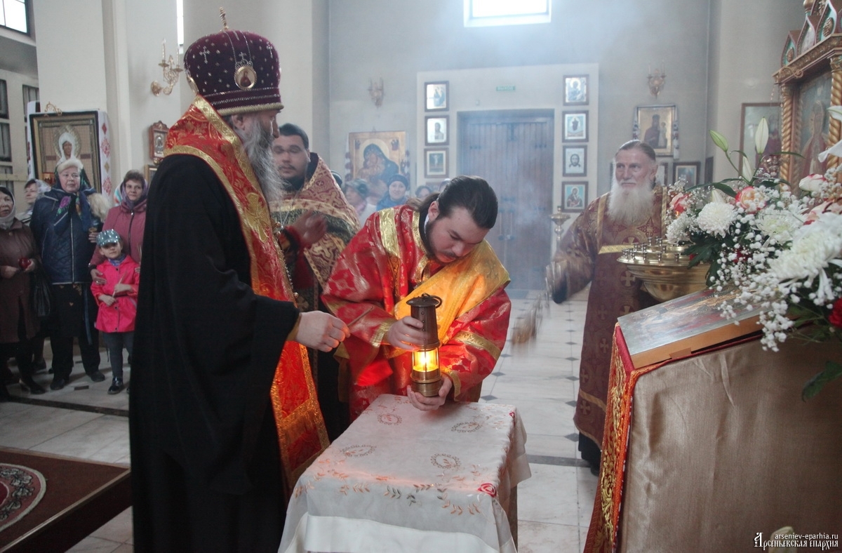 В кафедральном Благовещенском соборе его ждали епископ Арсеньевский и Дальнегорский Гурий с духовенством епархии и верующими. Святыню все ждали с нетерпением, со свечами и лампадками в руках.