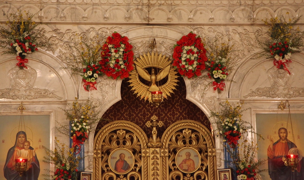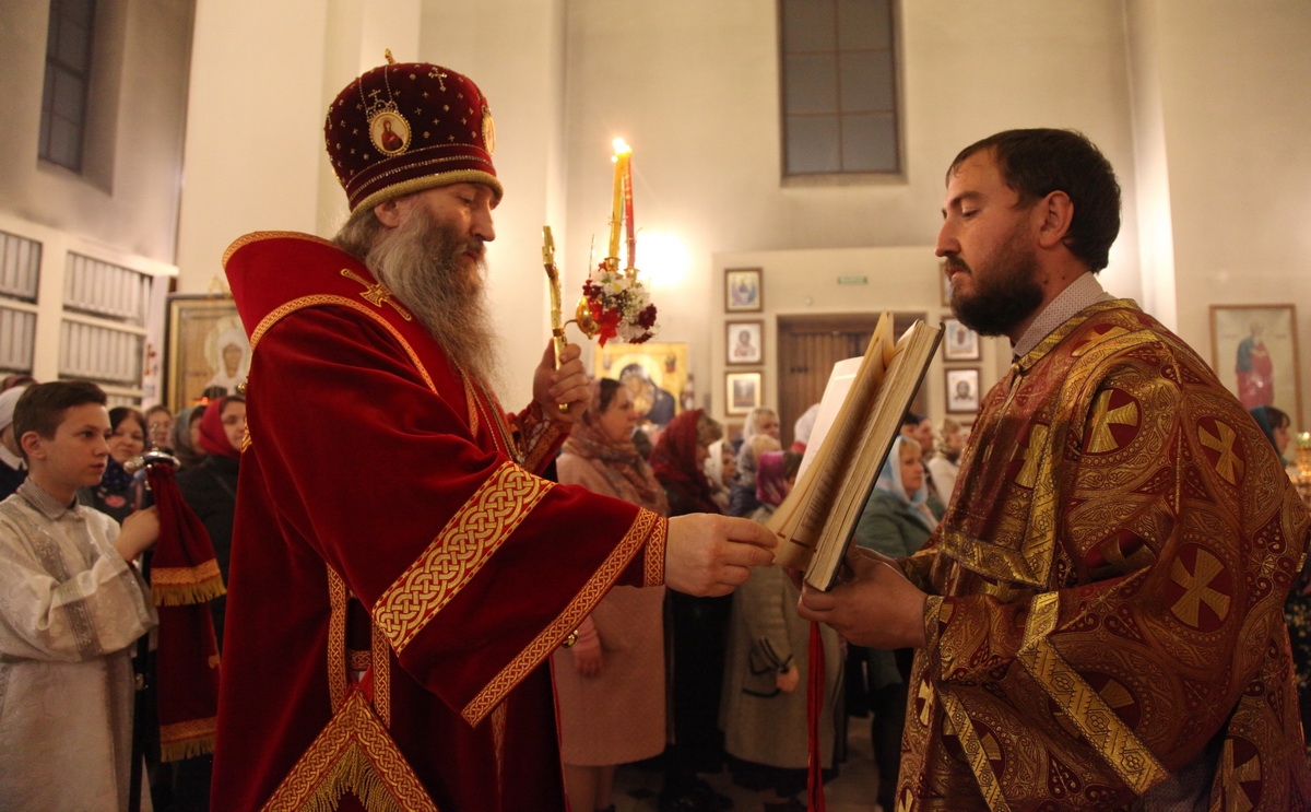 В светлый праздник Христова Воскресения, за полтора часа до службы, по традиции в кафедральном Благовещенском соборе началось чтение Деяний Апостолов, а духовенство собора во главе с епископом Арсеньевским и Дальнегорским Гурием исповедовало прихожан.