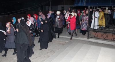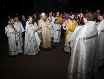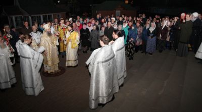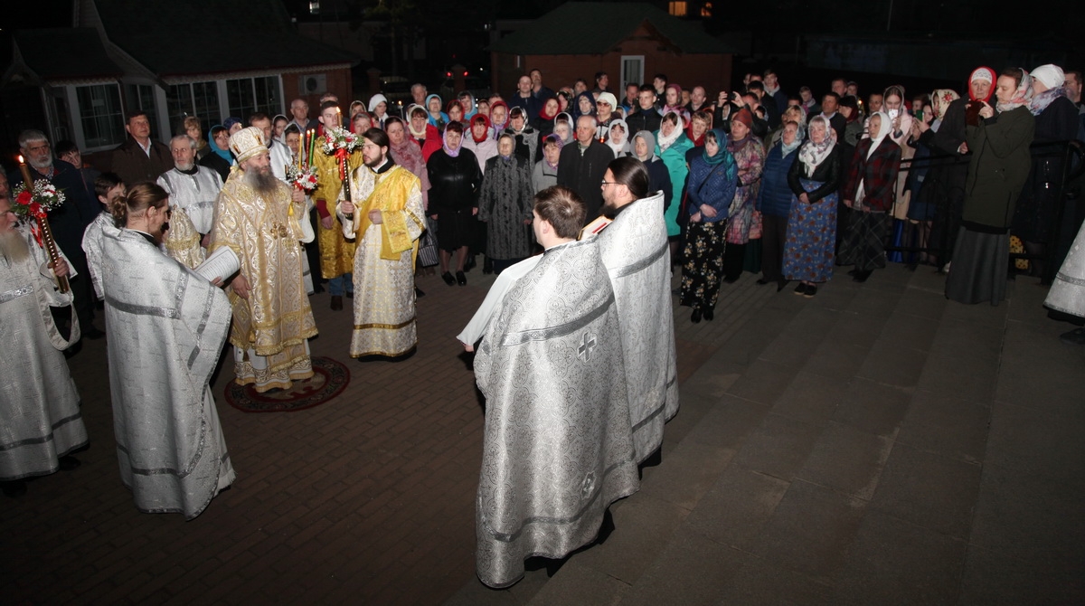 В 23:00 была совершена пасхальная полунощница с чтением Канона, около полуночи — Крестный ход вокруг храма, а ровно в 00:00 – началась радостная пасхальная заутреня, пение «Христос Воскресе!», пасхальные часы и Божественная Литургия.