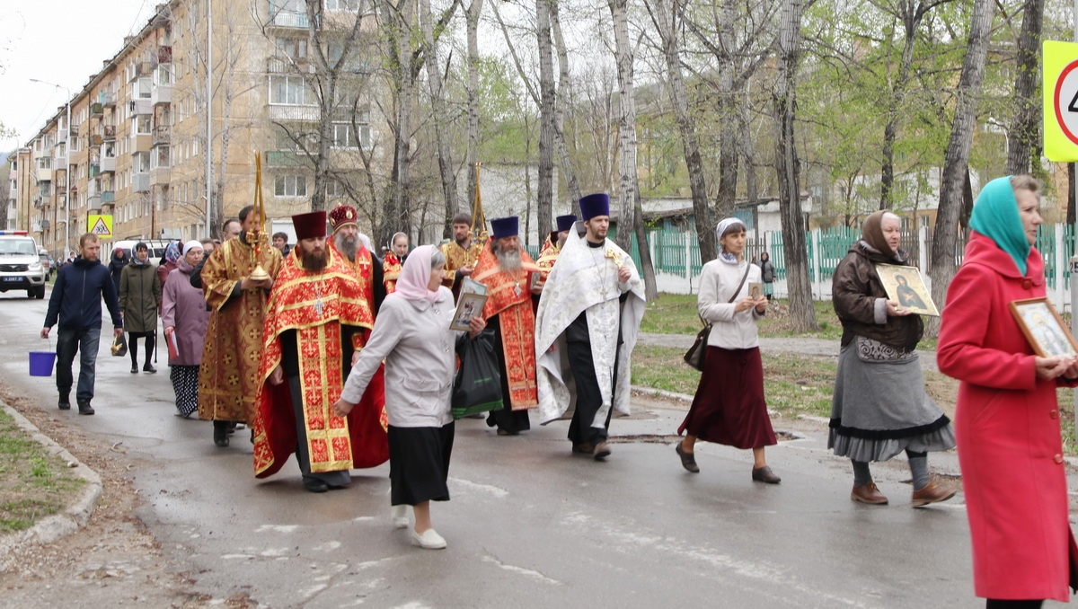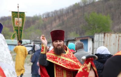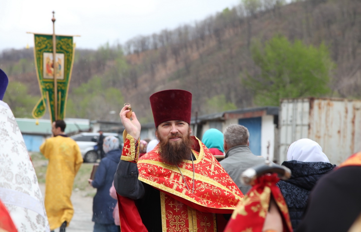 Затем епископ Гурий в сопровождении протоиерея Александра Сулема и диакона Кирилла Зиновьева отправились в поселок Кавалерово, куда так же доставили Благодатный огонь и пели пасхальные песнопения.