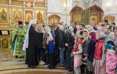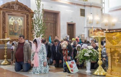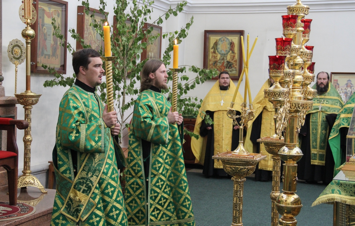 По окончании литургии митрополит Артемий совершил Великую вечерню праздника Пятидесятницы с чтением коленопреклоненных молитв.