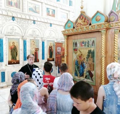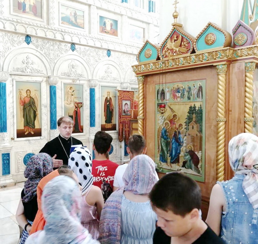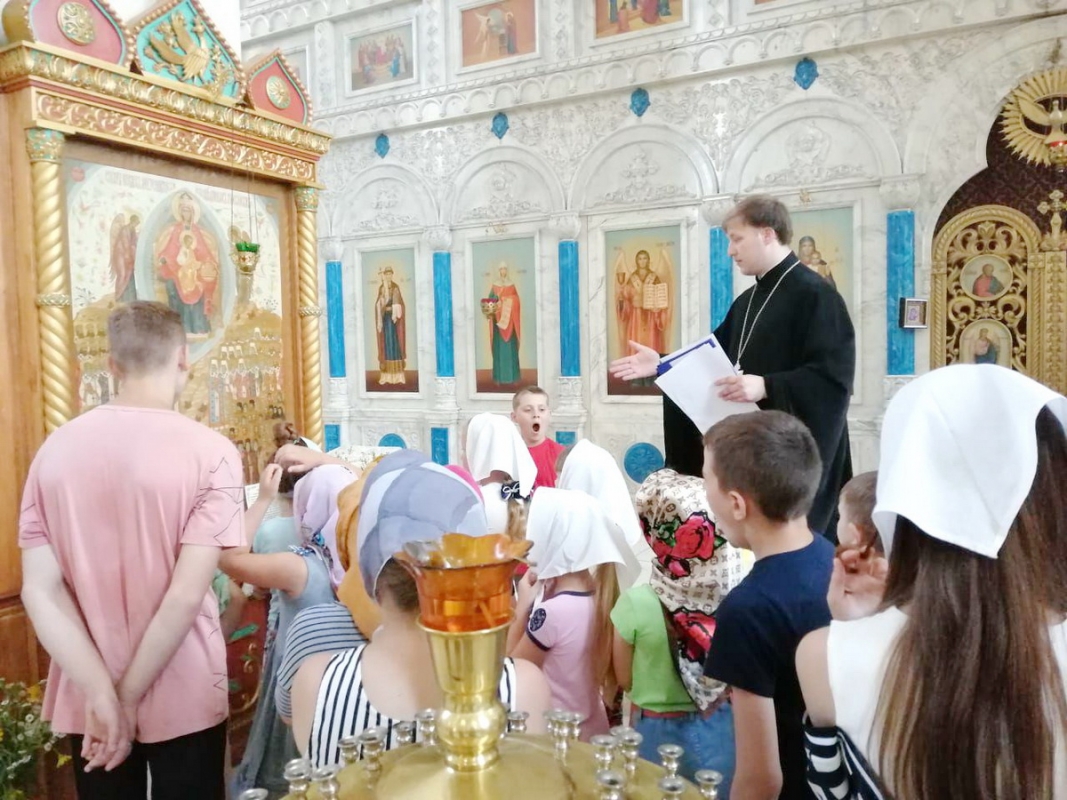 С 8 по 11 июля каждое утро участники лагеря приходили на экскурсию в Кафедральный Благовещенский собор. Здесь клирики Арсеньевской епархии провели для них экскурсии. Так, 8 июля экскурсию провел иерей Александр Ступа. Он рассказал ребятам об устройстве иконостаса и храма и о святых Петре и Февронии, чья память совершается сегодня.