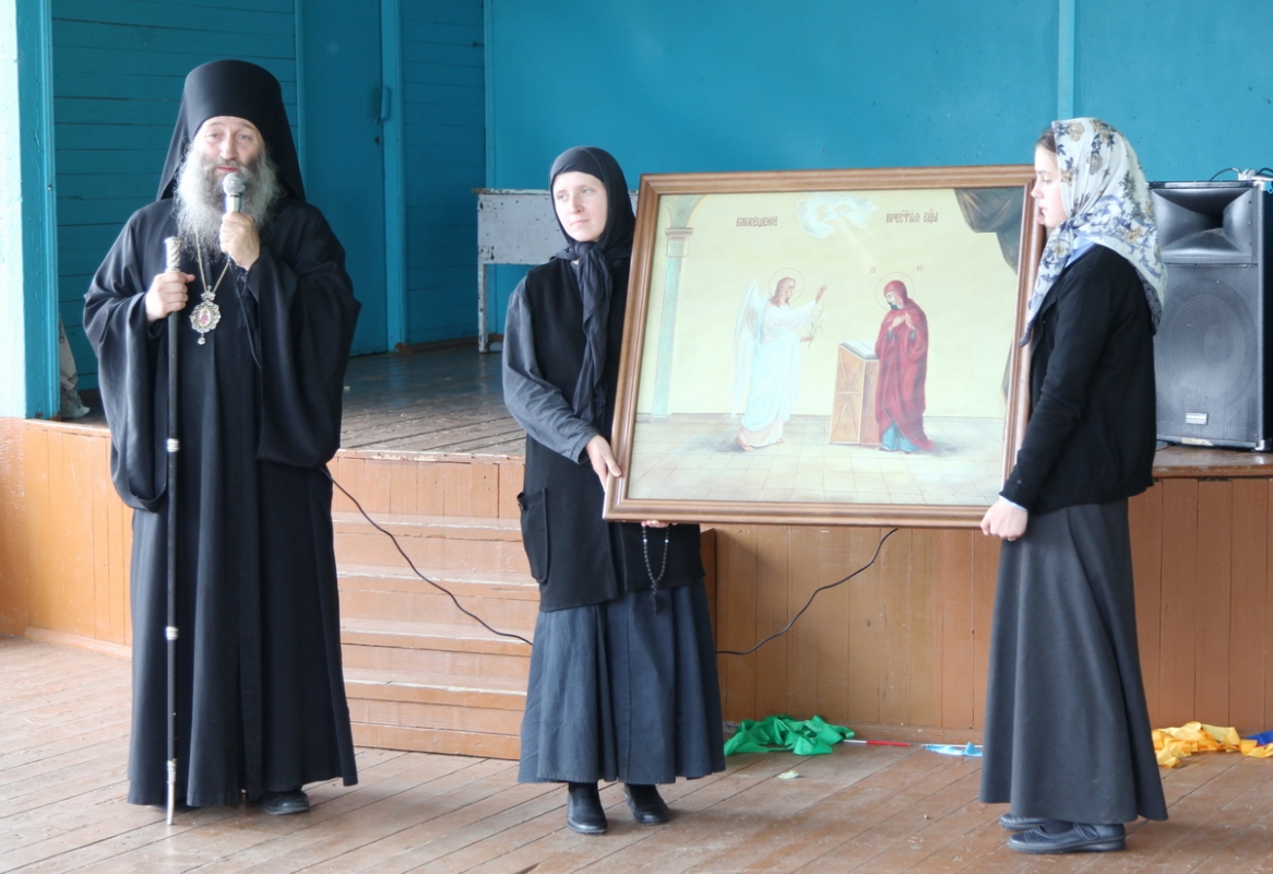 Епископ подарил лагерю икону Благовещения Пресвятой Богородицы из кафедрального Благовещенского собора. Участники спортивной смены лагеря показали Владыке и сёстрам Арсеньевской девичьей общины концерт.