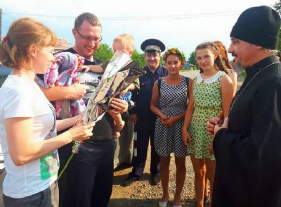 Акция проводилась в сотрудничестве с сотрудниками Чугуевского ГИБДД. Представитель ГИБДД останавливал машину, а дети из сёл Каменка и Кокшаровка дарили семьям иконочки, книги, цветы и булочки, сделанные своими руками.