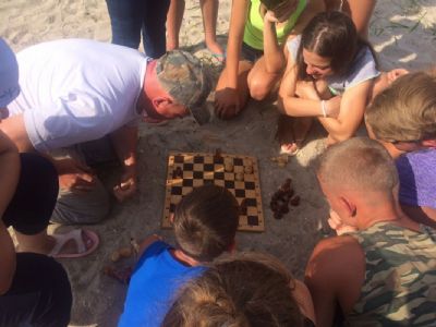 Дети и взрослые загорали, купались, пели песни (под аккордеон, караоке или просто так), участвовали в конкурсах, катались на катере, вместе решали бытовые вопросы — например, готовили еду.