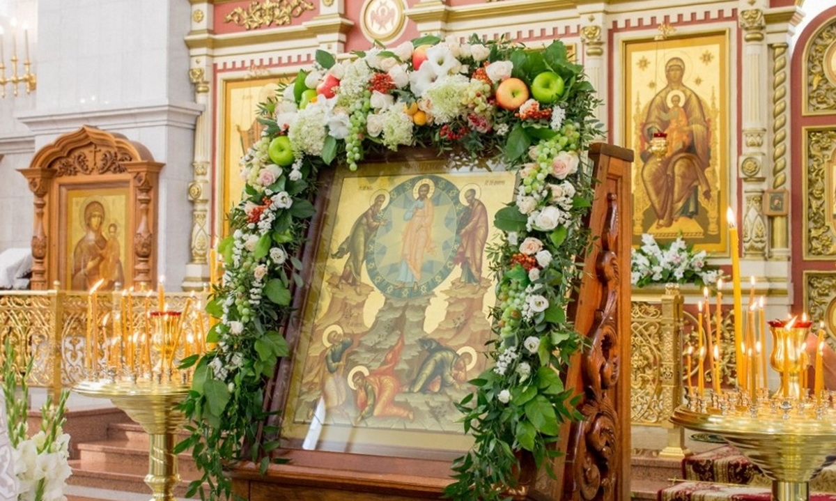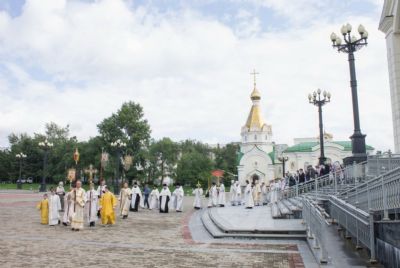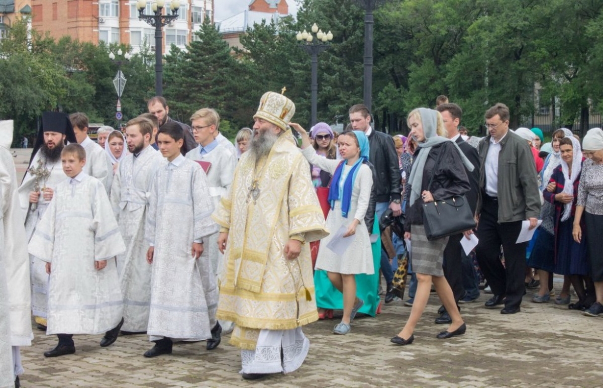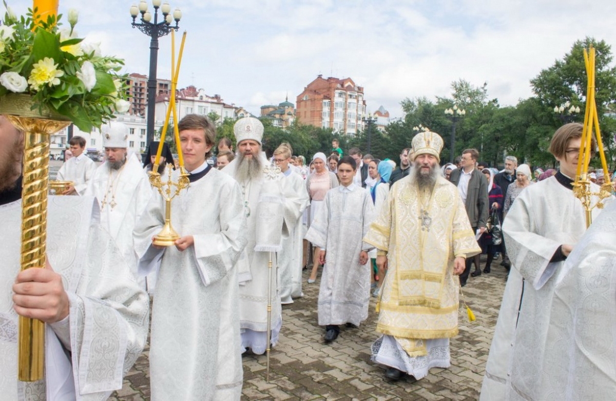 После окончания Божественной литургии митрополит Хабаровский и Приамурский Артемий совершил освящение плодов нового урожая, после которого были совершены славление празднику и Крестный ход вокруг храма.