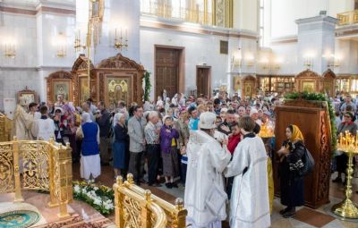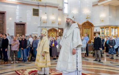 Владыка Артемий, поблагодарив за благопожелания, обратился с проповедью к многочисленным прихожанам, посетившим престольный праздник главного храма краевой столицы.