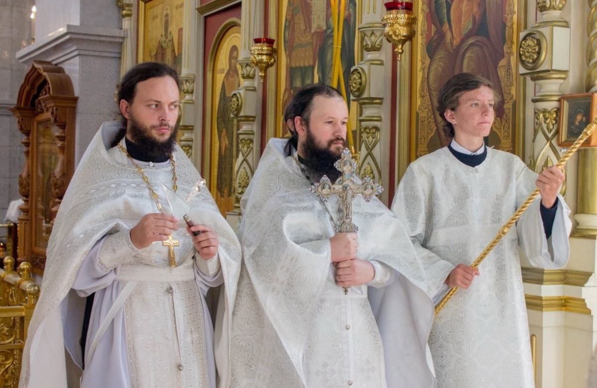 настоятель Спасо-Преображенского собора протоиерей Георгий Сивков, первый проректор Хабаровской семинарии иерей Дионисий Проскурин, иеромонах Софроний (Медведенко), иерей Георгий Ибрагимов, иерей Николай Столбиков.