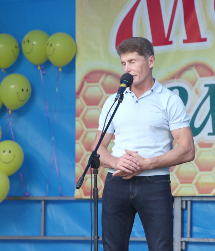 После главы Приморского края собравшихся поздравили глава Анучинского муниципального района Серей Понуровский, председатель сообщества пчеловодов Рамиль Еникеев и епископ Арсеньевский и Дальнегорский Гурий: «Уважаемый Олег Николаевич, Сергей Алексеевич, дорогие братья и сестры! Всех вас поздравляю с праздником мёда в нашем Приморье. Для нас большая радость каждый год быть вместе с народом, вместе со всеми тружениками и освящать, благословлять мёд. Недавно мы освящали мёд церковно, а теперь освящаем его здесь, на фестивале.