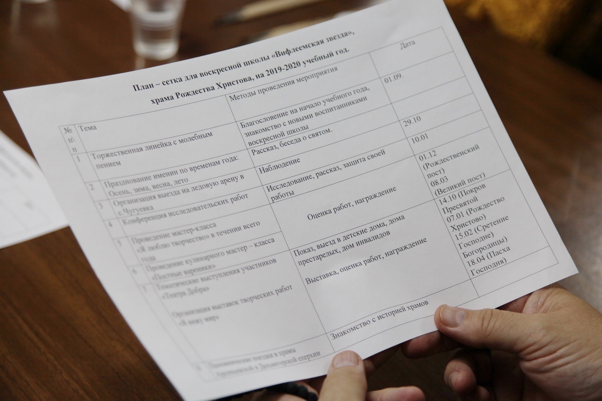 Инициатором собрания стал иеромонах Варсонофий (Рыжов): сейчас воскресная школа села Анучино активно развивается, в ней уже около 40 человек, и ещё много желающих. Как правильно настроить её работу?