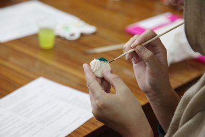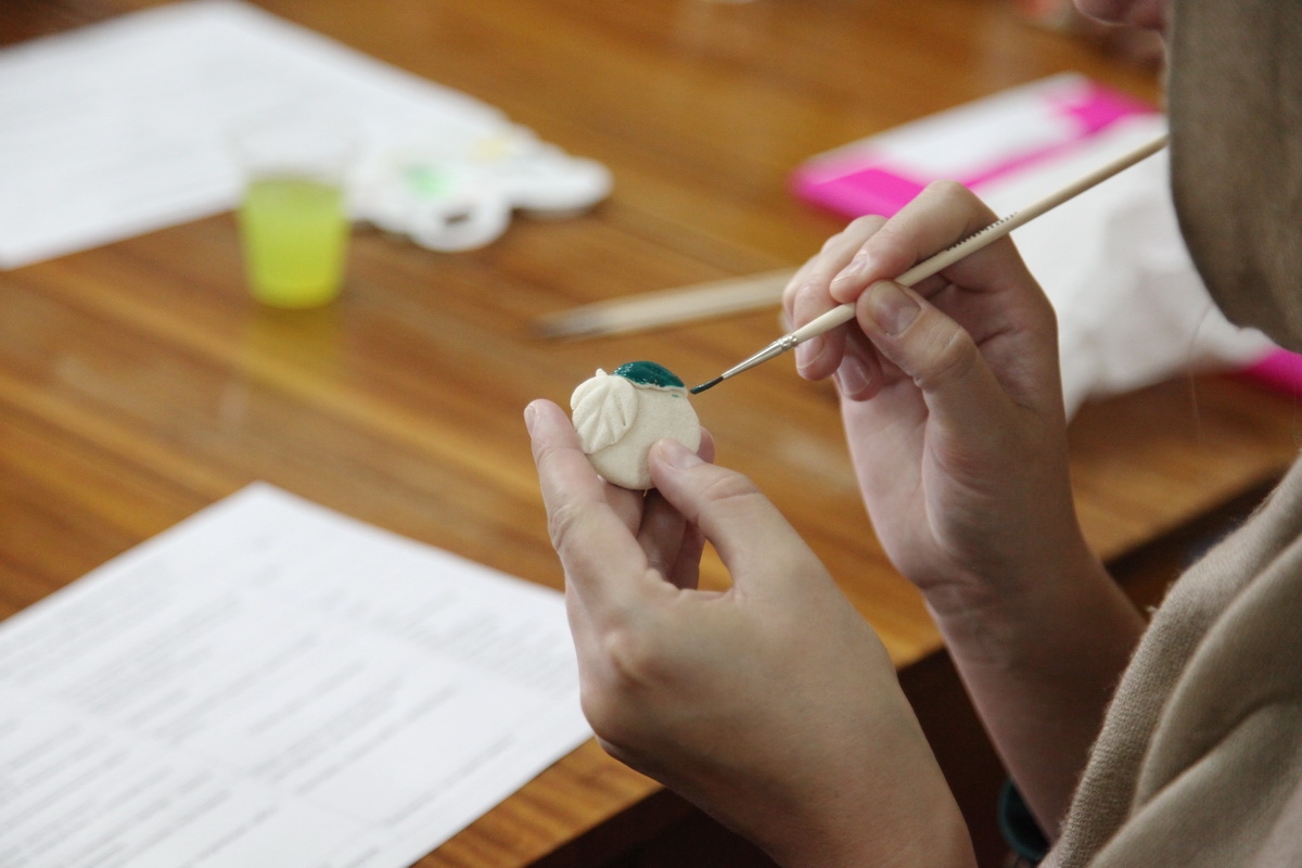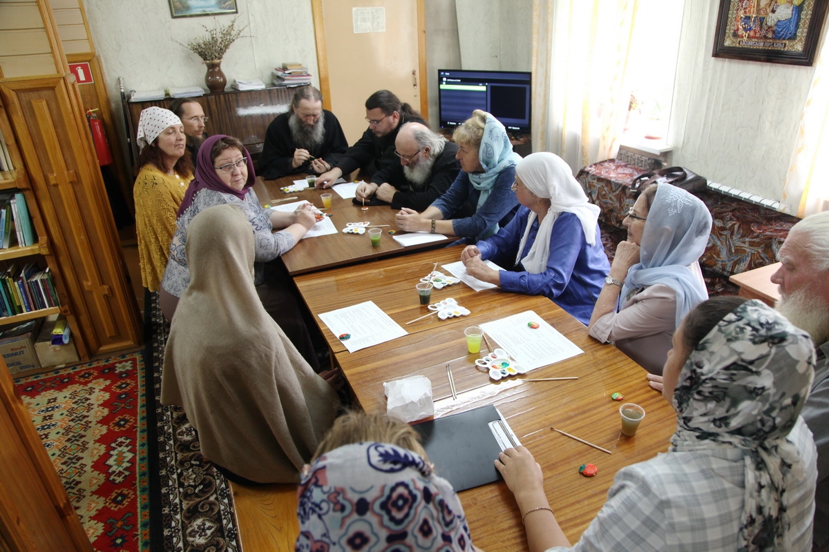 Матушка Любовь Ступа рассказала о том, как организована работа в воскресной школе в храме Рождества Христова в г. Арсеньеве. А преподаватель этой воскресной школы Екатерина Леонидовна Савченко, педагог дополнительного образования МОБУ ДО «ЦВР» Отделения Экологии и Туризма, провела мастер-класс для участников собрания – привезла с собой яблоки из солёного текста с приклеенными сзади магнитами, и все участники смогли их раскрасить с помощью пищевых красителей. Фигурки были сделаны в форме яблок в честь Преображения Господня.