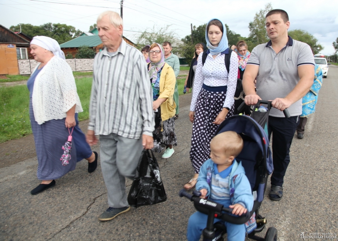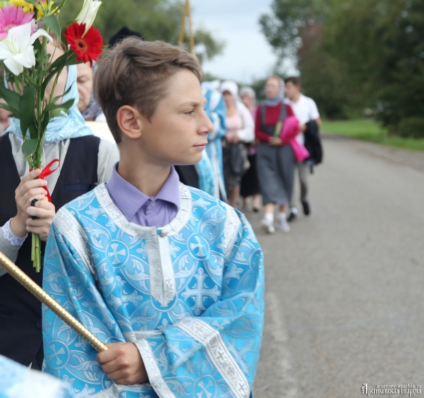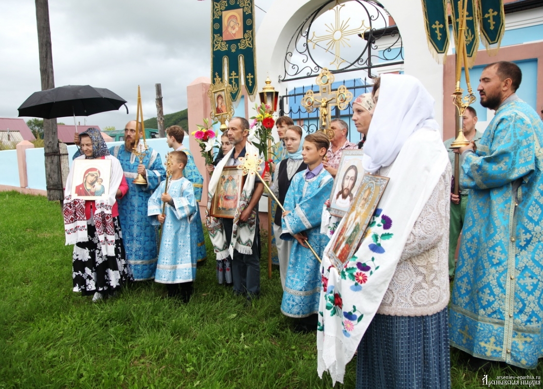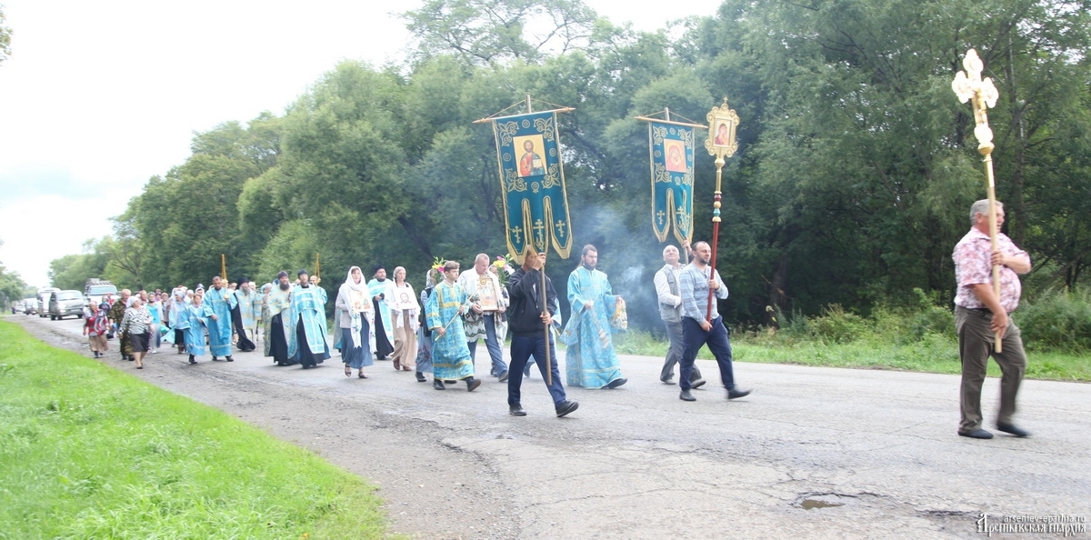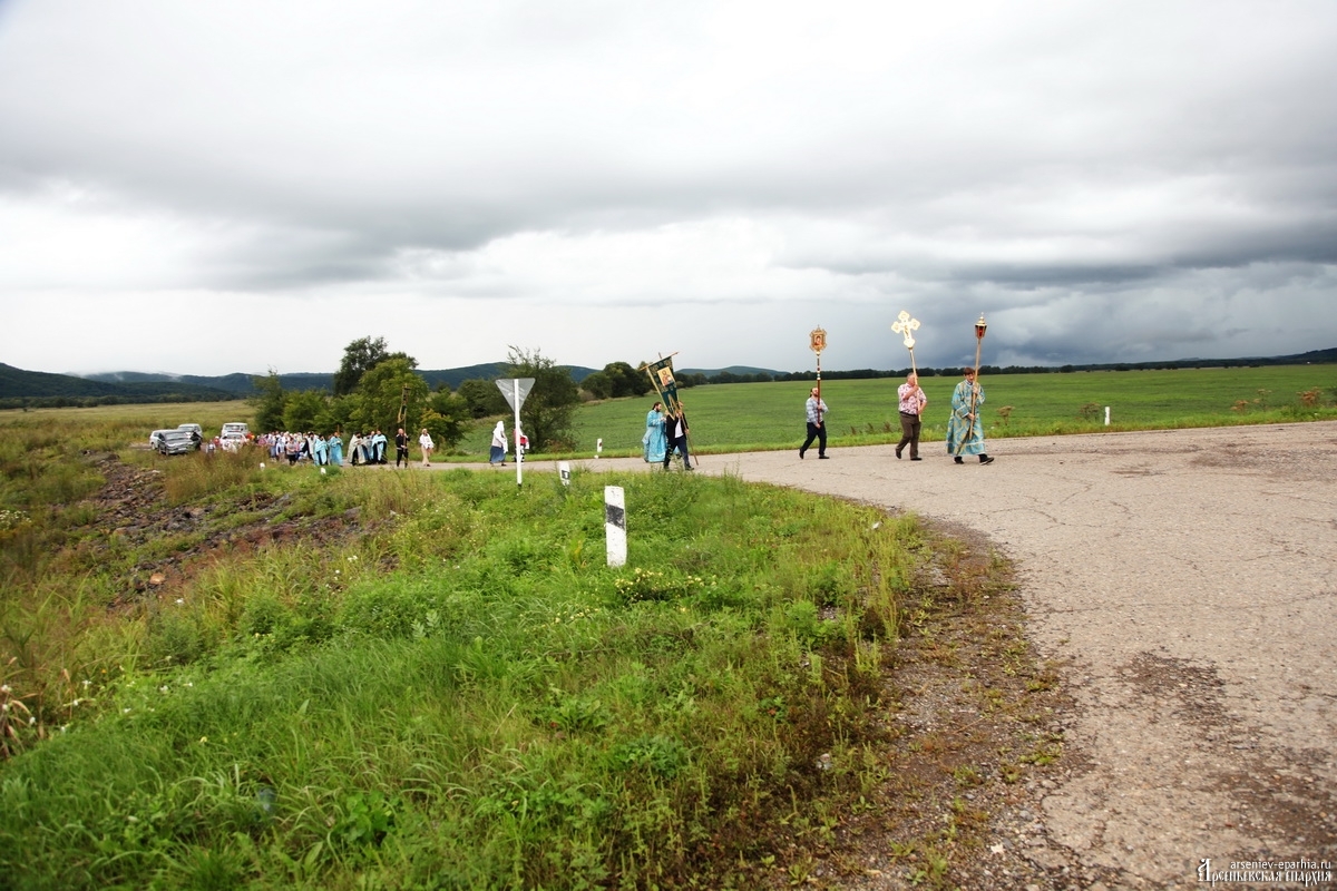 Успенский Крестный ход объединяет людей Арсеньевской епархии. В этом году идут сильные дожди, но всё равно, около 100 человек не побоялись пройти Крестным ходом, несмотря на плохую погоду. И Господь помиловал участников Крестного хода: почти на всём протяжении Крестного хода дождя не было.