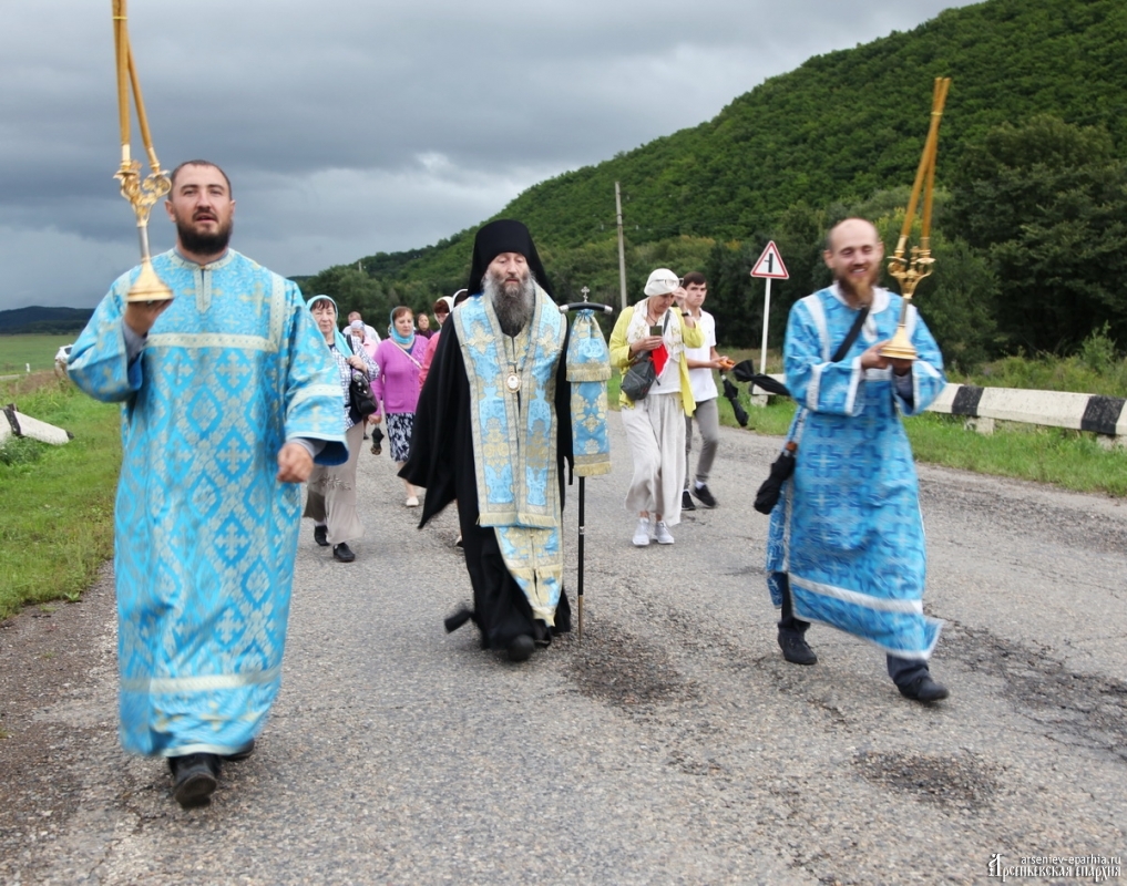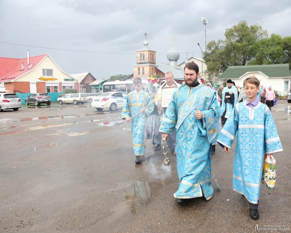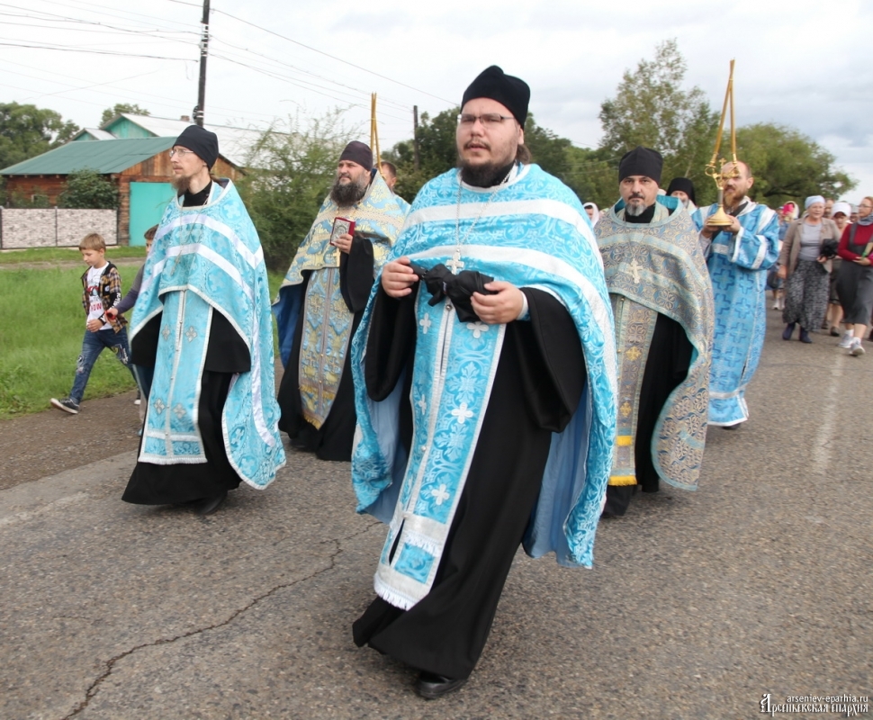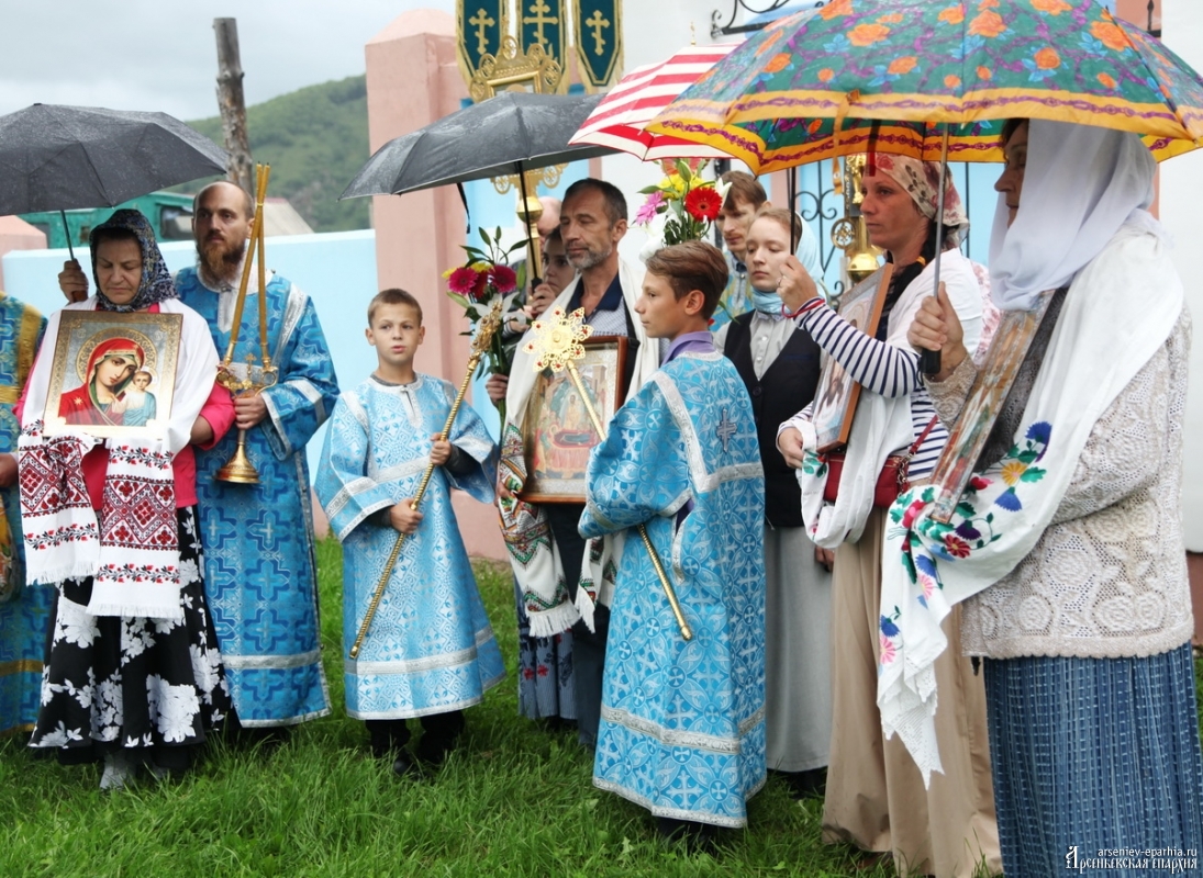Успенский Крестный ход объединяет людей Арсеньевской епархии. В этом году идут сильные дожди, но всё равно, около 100 человек не побоялись пройти Крестным ходом, несмотря на плохую погоду. И Господь помиловал участников Крестного хода: почти на всём протяжении Крестного хода дождя не было.