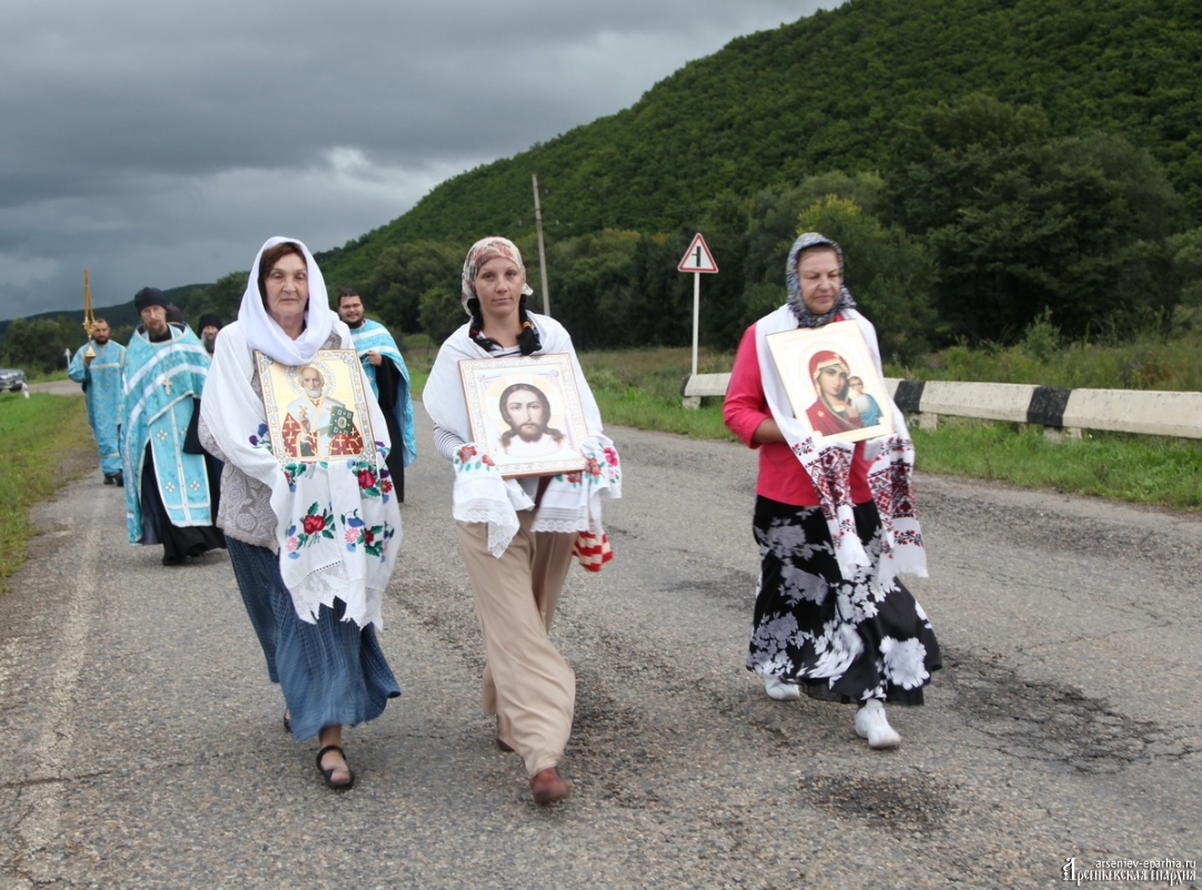 С хоругвями, с иконами Божией Матери под пение молитв крестоходцы из Чугуевки, Арсеньева, Дальнегорска, Кавалерово, Кокшаровки, Анучино преодолели расстояние в 14 км. Полная продолжительность маршрута составляет 17 км: 3 км из-за размытой дороги паломники проехали на автобусах.