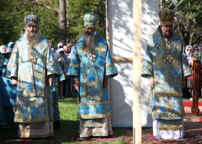 Праздничное богослужение завершилось крестным ходом по территории монастыря.