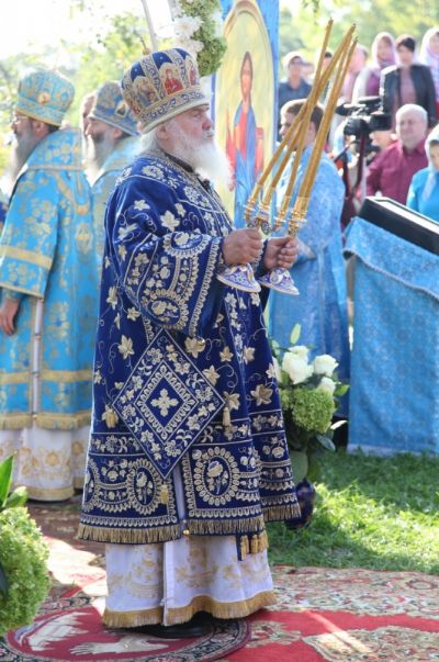 В завершение митрополит Владимир поздравил молящихся с престольным праздником Богородице-Рождественского монастыря и передал в дар обители икону священномученика Андрея Зимина.