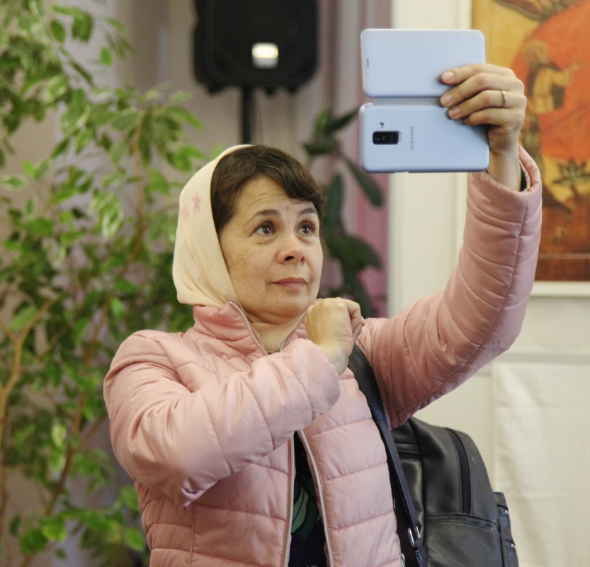 На обозрение зрителям было представлено более 50 икон. Часть из них – это полноразмерные высококачественные фотокопии икон из Центрального Музея древнерусской культуры и искусства имени Андрея Рублёва г. Москвы, остальные – подлинные иконы XVIII-XIX веков из фонда и храмов Арсеньевской епархии. Экскурсию провела инокиня Мария (Воробьева), которая рассказала присутствующим о разных фактах сотворения святых образов, их содержании и толковании. Объяснила, почему на иконах никогда не присутствует теней, а лики святых имеют несколько схематичное изображение.