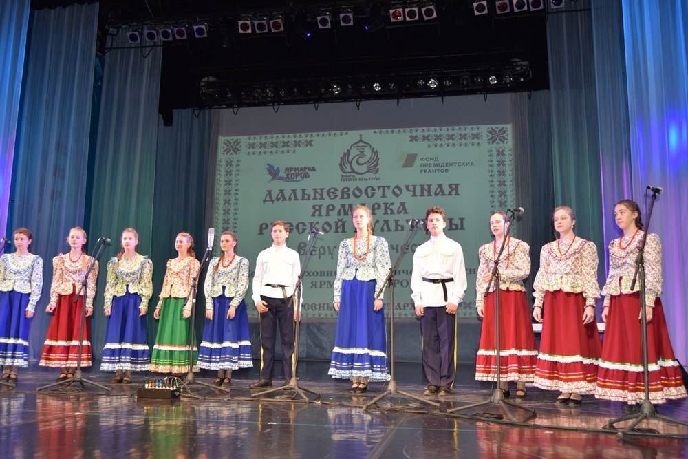 Ярмарка хоров проводится при поддержке Фонда президентских грантов в рамках проекта «Дальневосточная ярмарка русской культуры «ЗА ВЕРУ И ОТЕЧЕСТВО».