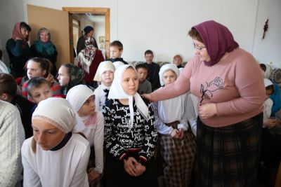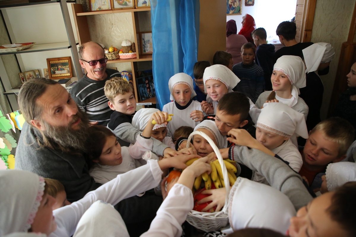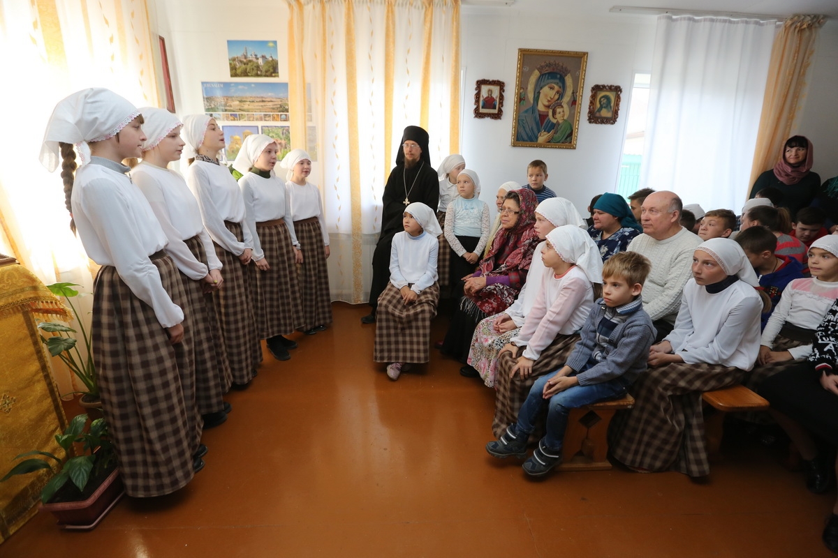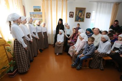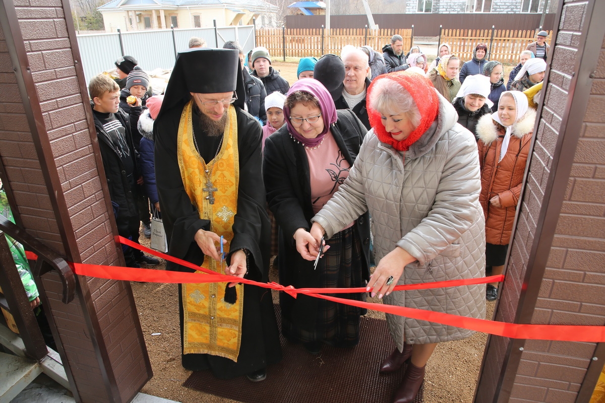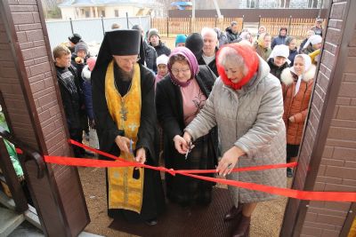 Перед открытием Дома учащиеся воскресной школы рассказали стихотворения и спели песни о престольном празднике храма – Покрове Пресвятой Богородицы. Ребята очень волновались, но всё прошло хорошо!