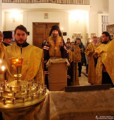 В преддверии Нового года епископ Арсеньевский и Дальнегорский Гурий совершил в кафедральном Благовещенском соборе г. Арсеньева новогодний благодарственный молебен с акафистом. Владыке сослужили иерей Александр Ступа, иерей Владимир Пыжиков, иерей Николай Колесников, диакон Кирилл Зиновьев и диакон Анатолий Яндюк.