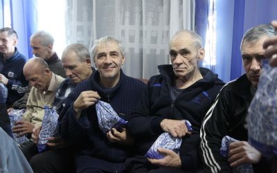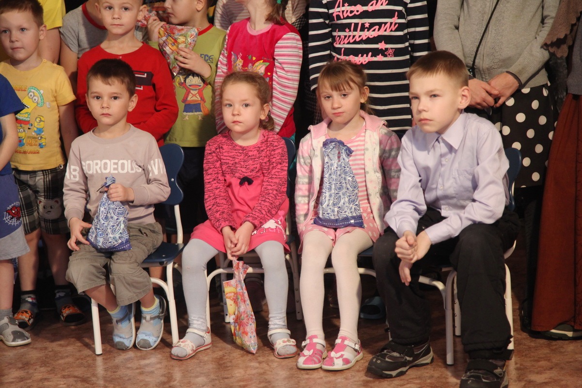 В конце каждого выступления ребята подарили подопечным социальных учреждений сладкие подарки от Арсеньевской епархии.