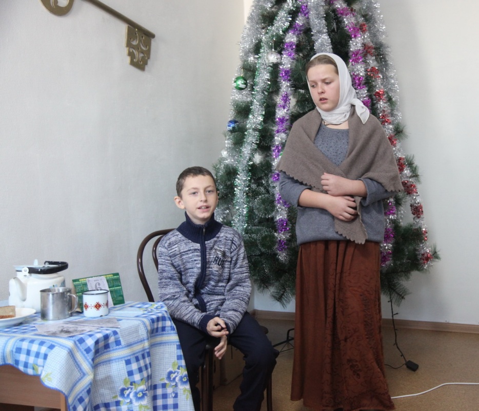 Традиционно во время Святок ученики воскресной школы кафедрального Благовещенского собора вместе с преподавателями и художественными руководителями ездят по социальным и образовательным учреждениям города Арсеньева и близлежащих поселений. В этом году ребята подготовили стихотворения и песни о Рождестве Христовом, а также небольшую сценку о том, как встречали Рождество в блокадном Ленинграде.