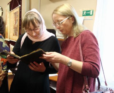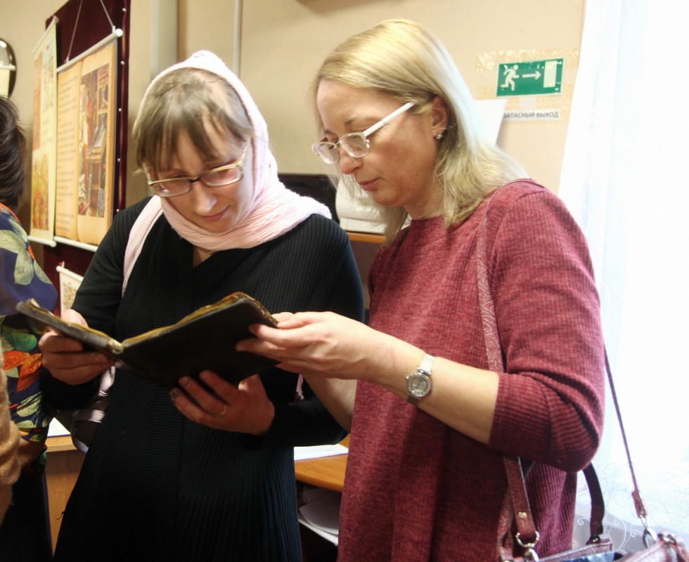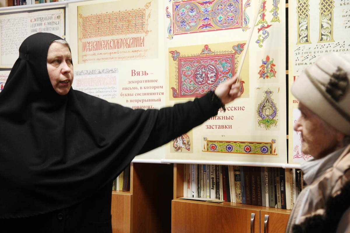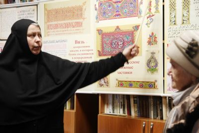 Подробную экскурсию в глубину веков к истокам создания письменности на Руси провела сотрудник епархии, организатор Дальневосточной ярмарки русской культуры инокиня Мария (Воробьева).
