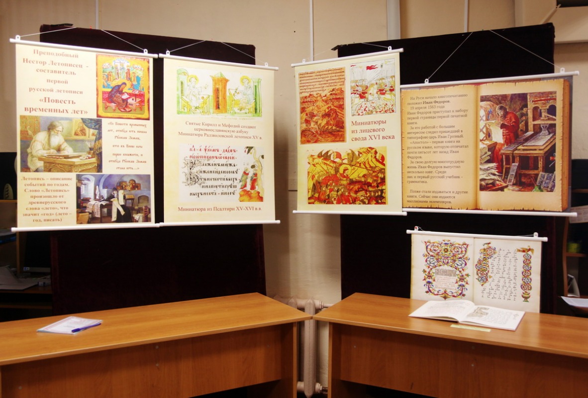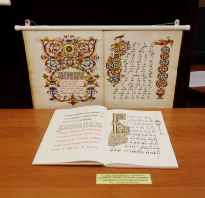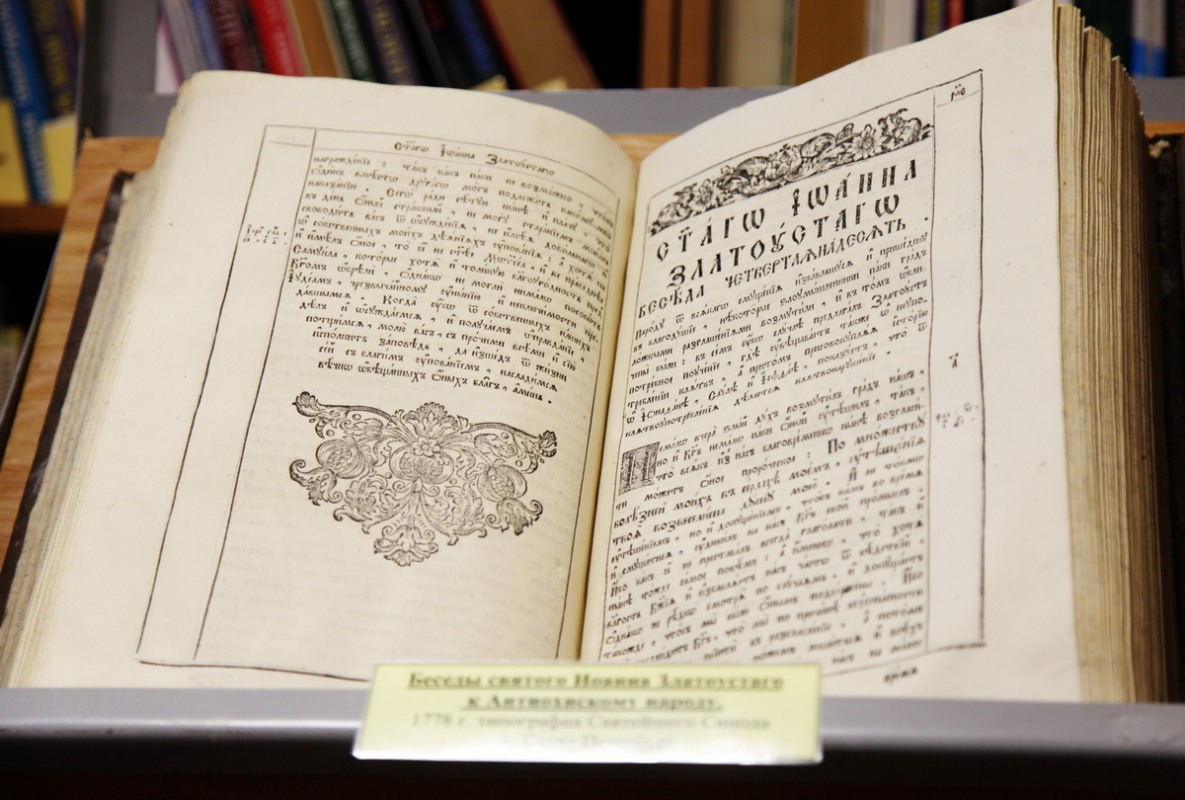 В книги вкладывали душу, старались сделать их очень красивыми: заголовки, инициалы, первые буквы (буквицы) писали «с красной строки». Древнерусские художники включали в свои орнаменты образы птиц и зверей, растений и людей. Некоторые книги вставлялись в кованые книжки-оклады и украшались серебром, золотом и драгоценными камнями. Эта традиция сохранилась в Церкви и по сей день. Так, на выставке представлено современное напрестольное Евангелие в тяжелом кованом окладе. Общий вес книги – более 7 килограммов!