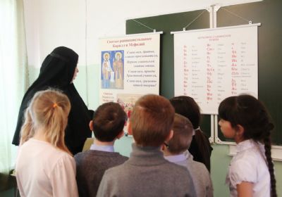 «Необычное мероприятие прошло в стенах нашей школы: игра-квест «По страницам истории славянской письменности», организаторами которой была Арсеньевская епархия, – рассказывает Людмила Павловна Паладич, заместитель директора МБОУ СОШ №1 с. Новосысоевка. – Учащимся предстояло пройти несколько этапов, узнавая новое и отыскивая ответы на поставленные вопросы. Команды юных «Светочей», «Русичей», «Витязей», «Славян», «Мудрецов» отправились в удивительное путешествие. Все детали обстановки, подача информации, формулировки вопросов были направлены на то, чтобы дети чувствовали себя уверенно. Доброжелательные взрослые – наставники на каждом из шести этапов знакомили участников с историческими событиями и давали задания. Ребята погрузились в мир древнерусского языка, разбирая надписи на берестяных грамотах, подыскивая синонимы устаревшим словам, узнавая историю появления в языке фразеологизмов, связанных с азбукой. Фильм о первопечатнике Иване Федорове для многих стал открытием, а старинные книги (одна из них рукописная XVII века!) потрясли. Держать в руках такую древность, листать страницы, на которых писал какой-то монах, видеть деревянный переплет, разбирать витиеватую вязь – это круче любых мультимедийных проектов! Многие участники успешно прочитали текст и перевели его на современный язык».
