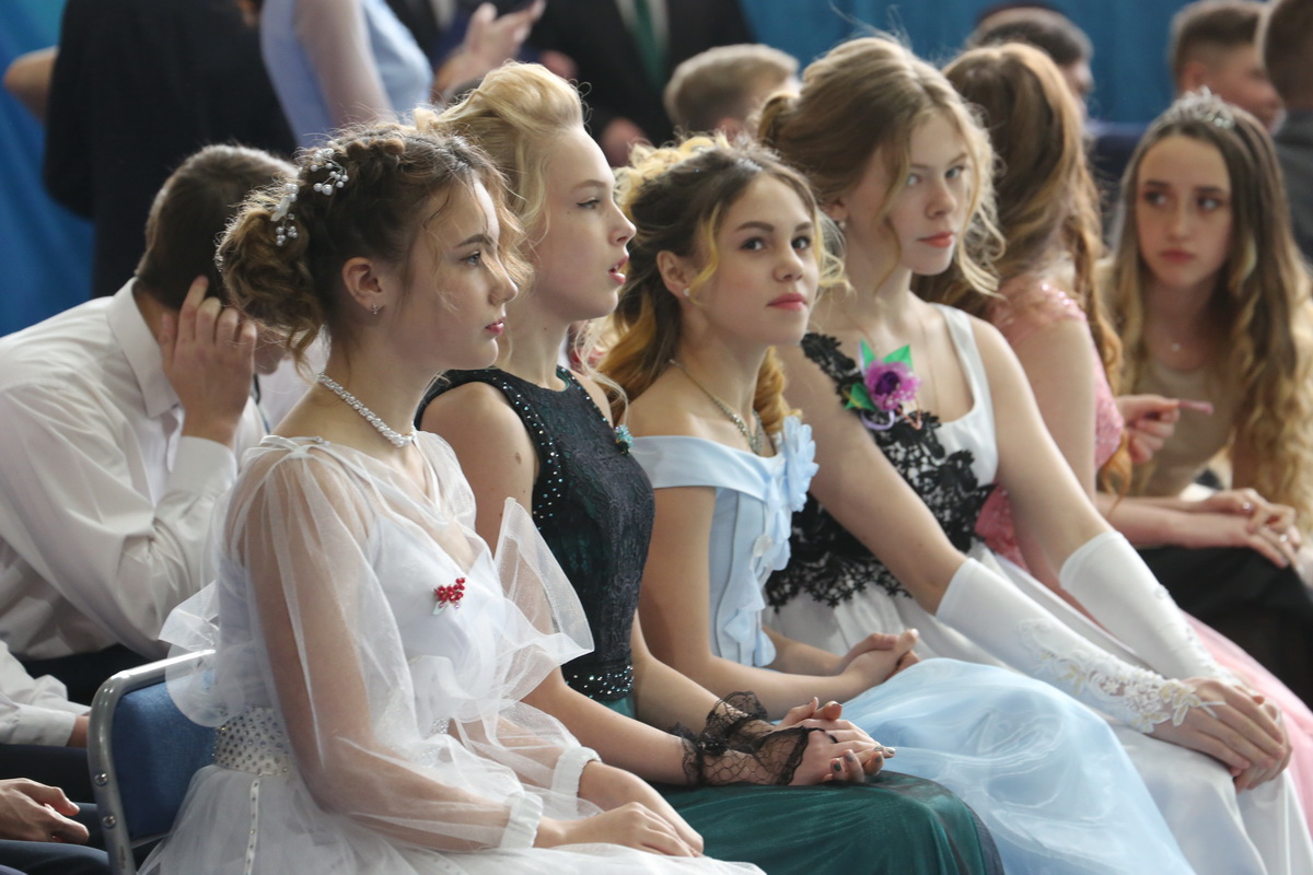 В спортивном зале СШ «Полёт» собрались учащиеся всех школ города и представители молодёжной общественной организации «Синяя птица». Среди гостей – врио главы АГО Владимир Пивень и председатель Думы города Анатолий Щербаков. На трибунах – взволнованные родители школьников. Раздаются звуки полонеза – танца-открытия. Бал начался…