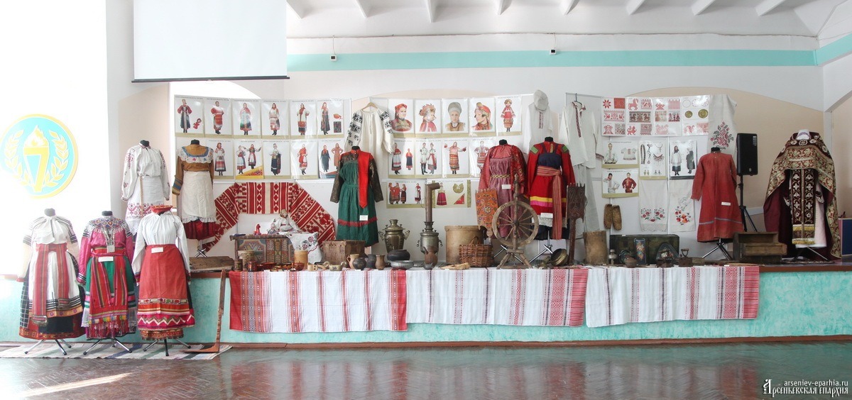 7 февраля в арсеньевской гимназии № 7 открылась выставка русского народного костюма. Выставка проходит в рамках проекта “Дальневосточная ярмарка русской культуры” (при поддержке Фонда президентских грантов).