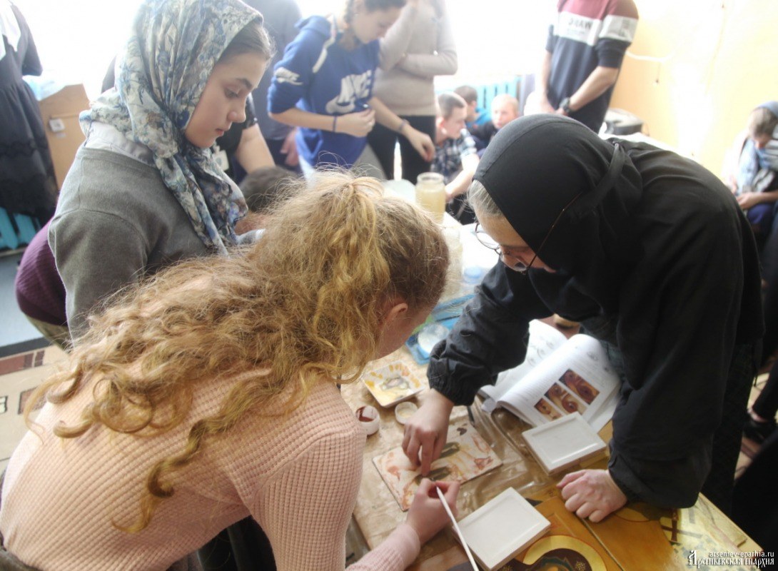 В рамках проекта Арсеньевской епархии «Дальневосточная ярмарка русской культуры» (реализуется при поддержке Фонда президентских грантов) инокиня Дария (Муленкова) провела на Сретенской лыжне мастер-класс по иконописи.