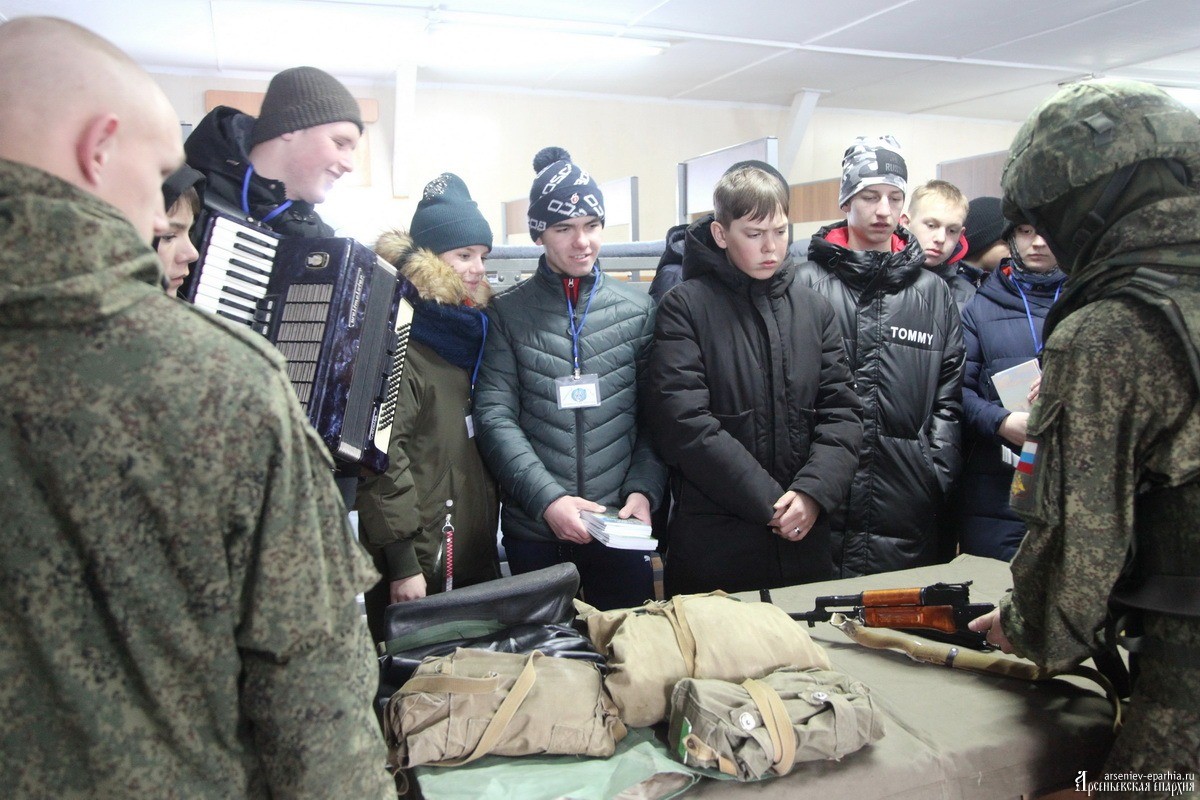 Одним из самых захватывающих мероприятий Сретенской лыжни стала экскурсия в танковую часть №42718. В казармах солдаты части показали ребятам, как собирать и разбирать автомат и как надевать костюм химзащиты. А в ответ ребята исполнили перед солдатами песни «Три танкиста» и «Идёт солдат по городу».