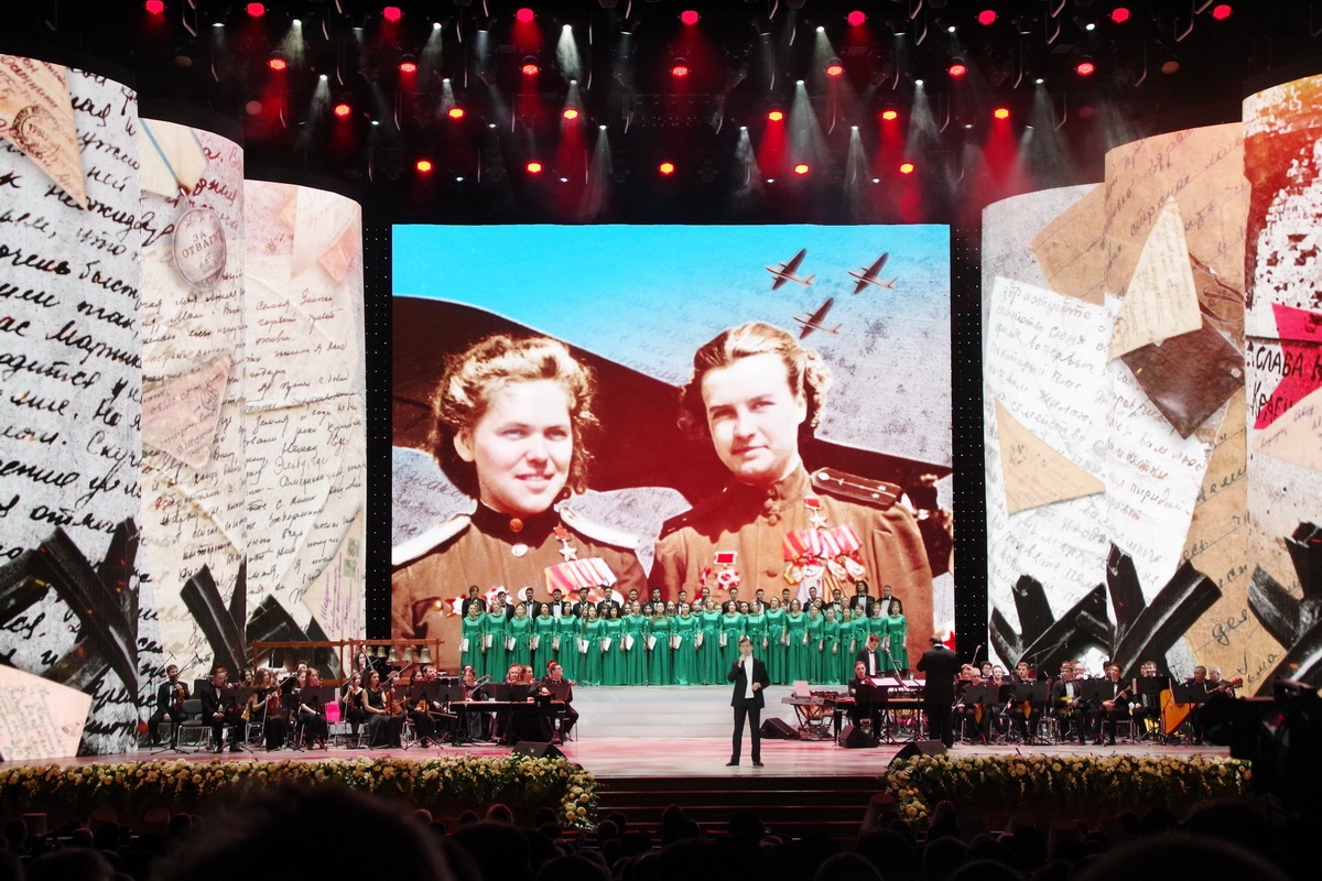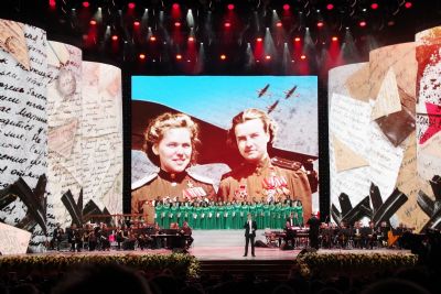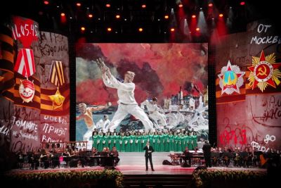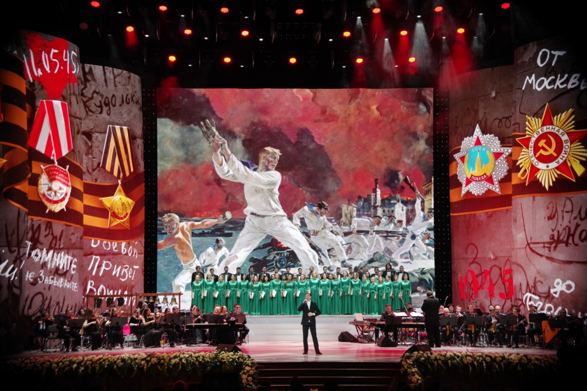 По завершении официальной части состоялся праздничный концерт с участием Большого концертного оркестра «Россия», академической хоровой капеллы Российского университета транспорта, театра танца «Рандеву». Выступления артистов сопровождались фрагментами великолепного лазерного шоу и видеоинсталляциями на тему войны, на экране оживали произведения выдающихся российских художников.