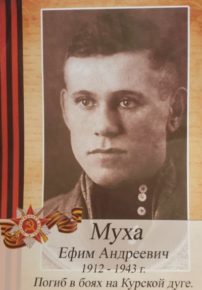 Ты, Ефим Андреевич Муха, в ту пору был председателем совхоза «Волфино» Глушковского района, Курской области. По заданию партии тебе было поручено ответственное дело – эвакуировать все многочисленное поголовье крупного рогатого скота в город Нижний Кисляй. Вражеские самолеты уже бомбили приграничные территории, уничтожали поезда с мирными людьми, спасающимися от надвигающейся беды вглубь страны. Ты успешно справился с поставленной задачей, несмотря на жестокие авианалеты и постоянные бомбежки, практически без потерь, эвакуировал совхозное стадо, а вместе с ним переправил в безопасное место свою семью. Но вы тогда еще не предполагали, что расстаетесь навсегда… После этого, ты вернулся в свой район и сразу отправился в военкомат, чтобы проситься на фронт. Но, как опытному руководителю и коммунисту, тебе было поручено возглавить партизанское движение на родной курской земле.