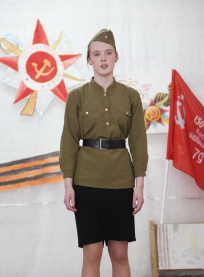 1 место – Моторина Анна, 9 лет, МКОУ «СОШ п. Ольга», Ю. Друнина «Сердце словно опалило»