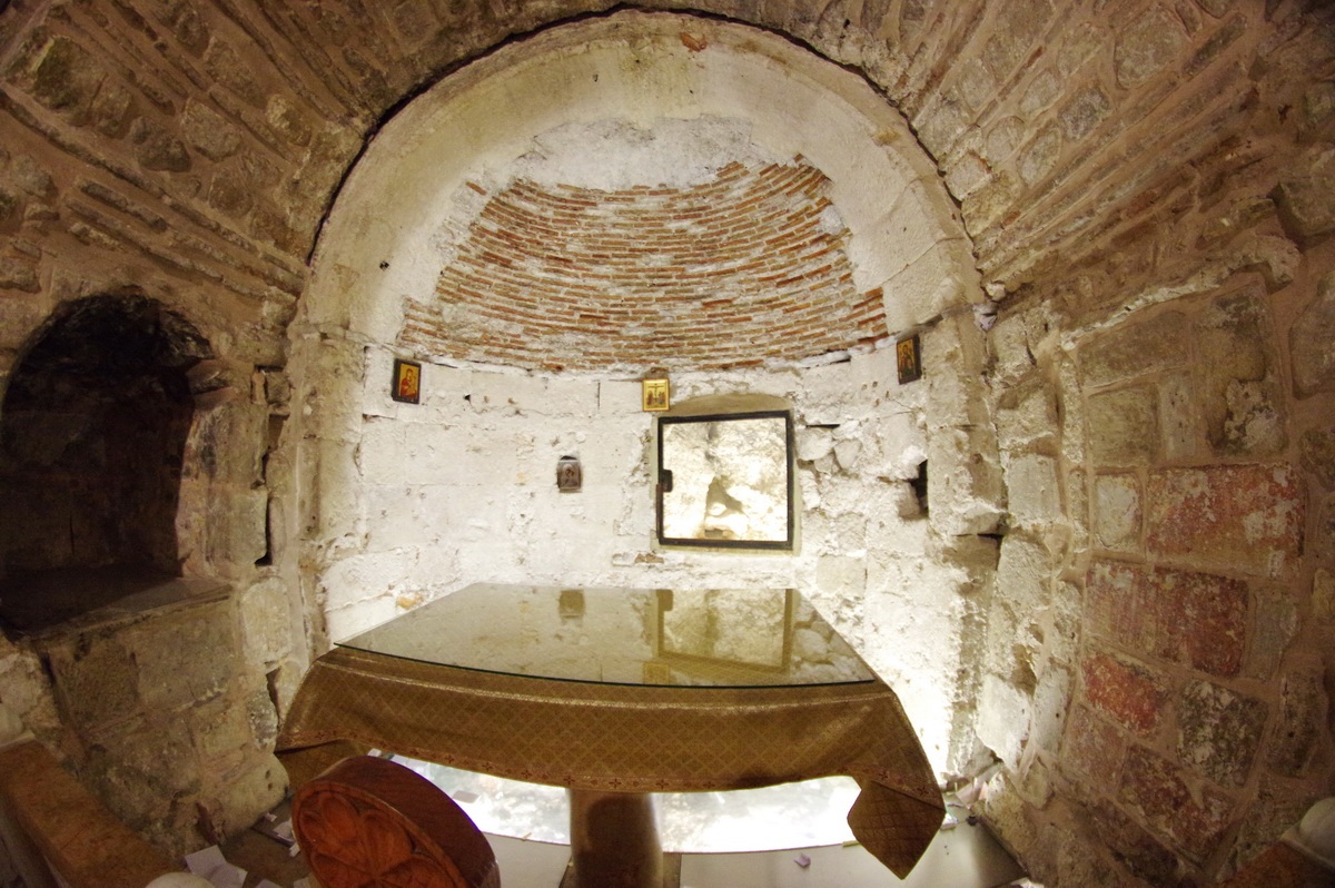 Спускаемся в тесную влажную гробницу, читаем отрывок из Евангелия о величайшем чуде воскрешения праведного Лазаря.