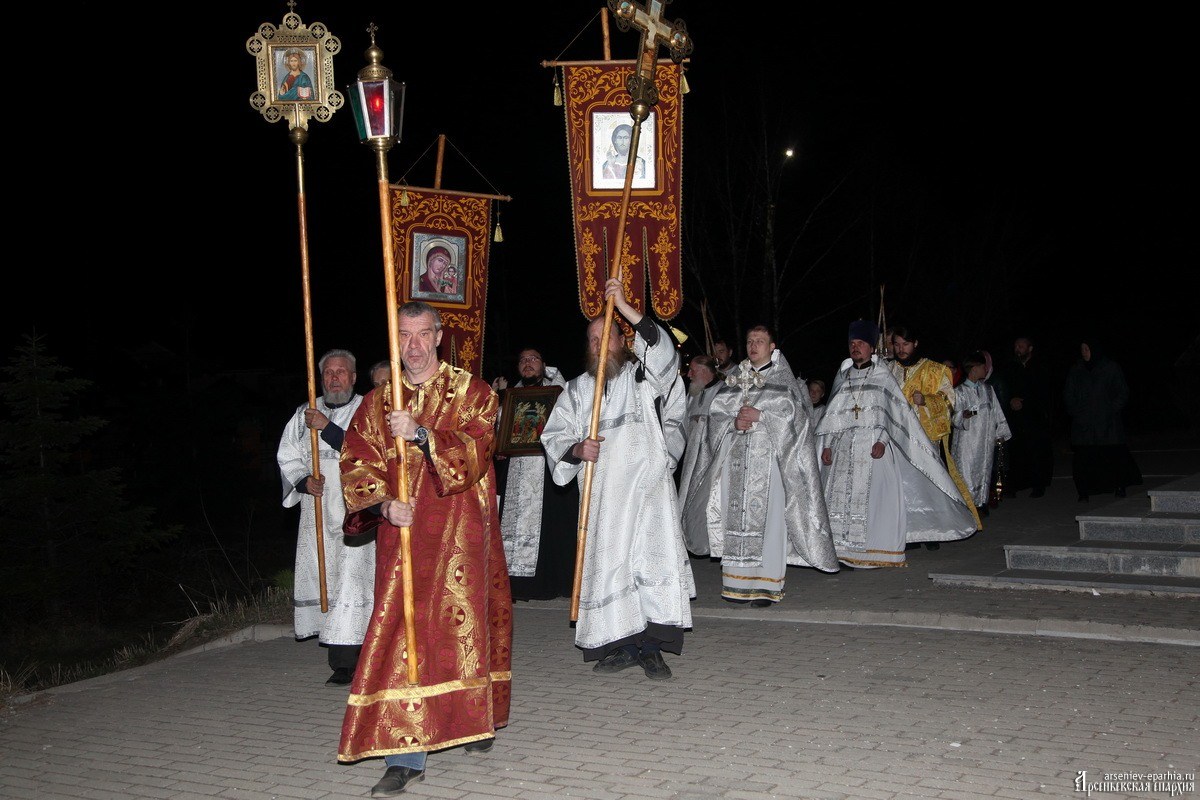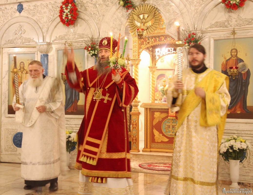 По окончании богослужения были освящены артосы. Торжественную Пасхальную службу совершил правящий архиерей Арсеньевской епархии в сослужении иерея Александра Ступы, иерея Владимира Пыжикова, иерея Николая Колесникова, диакона Кирилла Зиновьева и диакона Анатолия Яндюка.