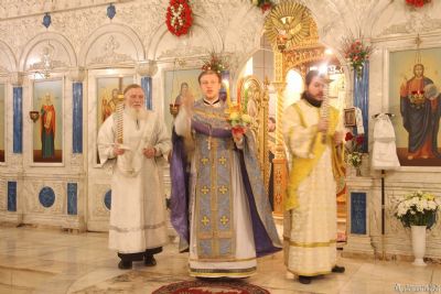 Утром того же дня Пасхи в кафедральном Благовещенском соборе также была совершена поздняя Литургия.