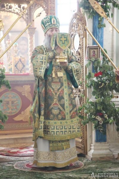 В праздник Пятидесятницы епископ Арсеньевский и Дальнегорский Гурий совершил праздничную Божественную литургию в Благовещенском соборе г. Арсеньева (+ Фото + Видео)